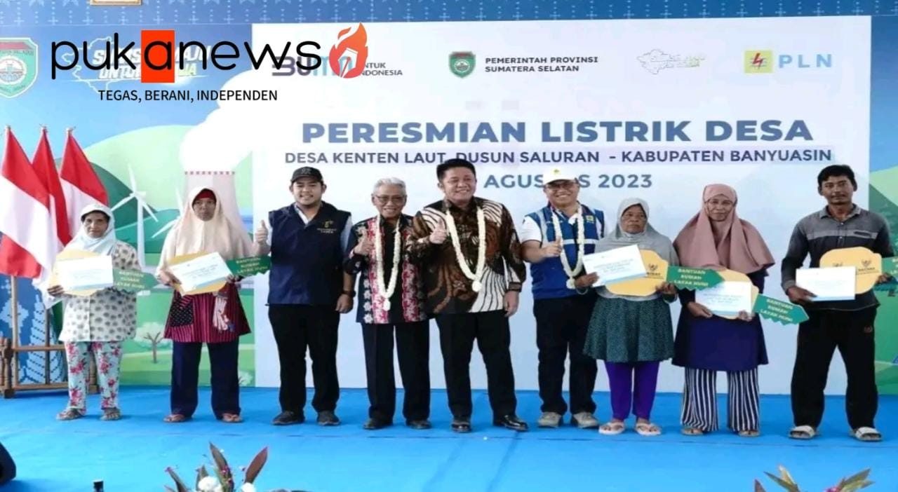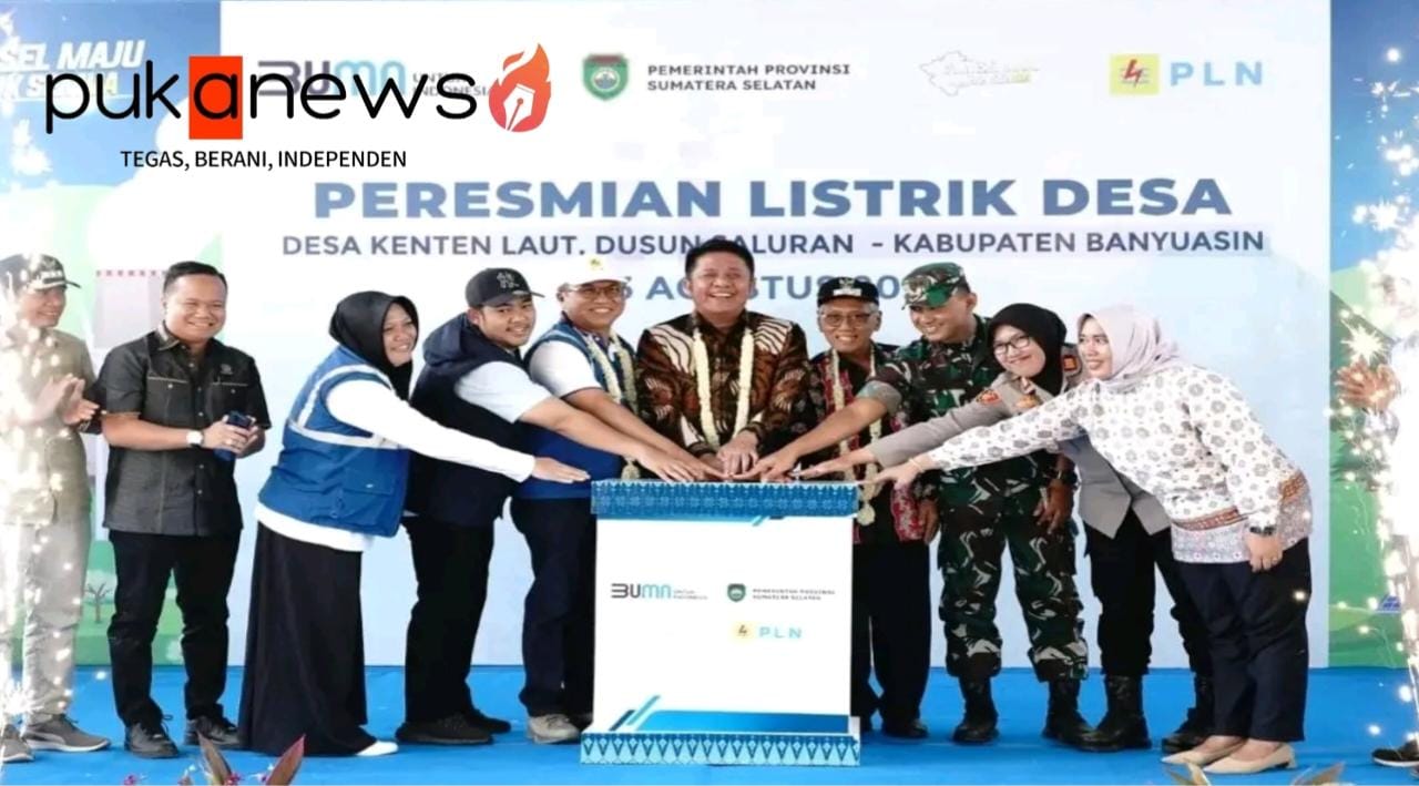 Pukanews.com, Banyuasin – Penantian selama 30 Tahun Warga Desa Kenten Laut Dusun Saluran untuk merasakan aliran listrik akhirnya terwujud, aliran listrik tersebut diresmikan langsung oleh Gubernur Sumatera Selatan H. Herman Deru (HD), Minggu 13/08/2023.