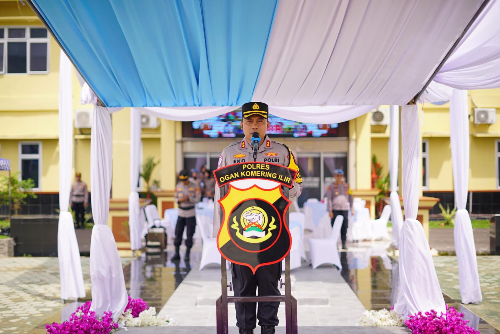 Upacara tersebut dipimpin langsung oleh Kapolres OKI AKBP Eko Rubiyanto, SH, SIK, MH, dan diikuti oleh para pejabat utama, perwira, serta seluruh personel Polres OKI.