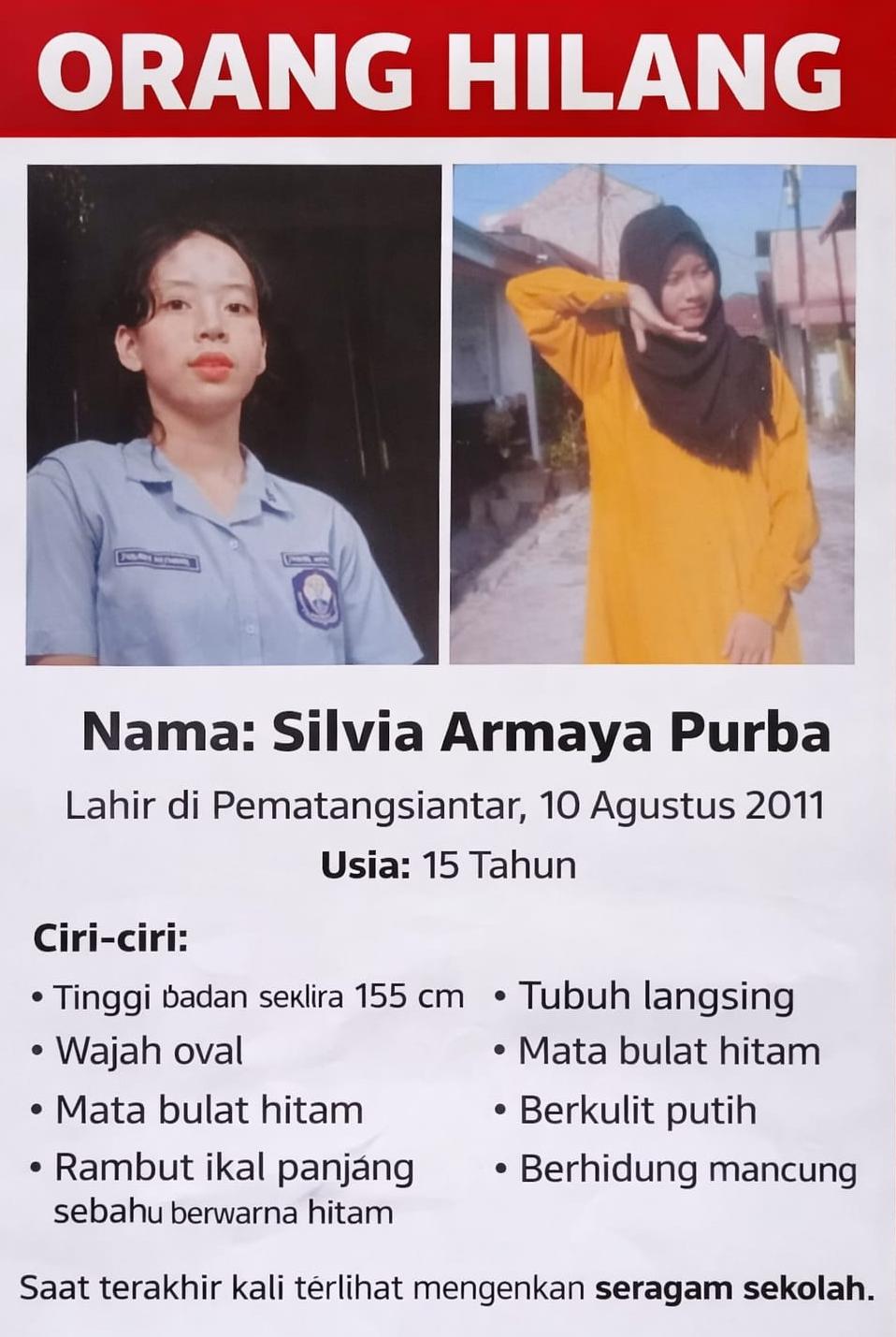 Silvia Armaya Purba, lahir di Pematangsiantar pada 10 Agustus 2011, kini berusia 15 tahun. Gadis berstatus pelajar ini memiliki ciri-ciri fisik yang cukup khas, yakni tinggi badan sekira 155 cm, postur tubuh langsing, wajah oval, mata bulat berwarna hitam, rambut ikal panjang sebahu berwarna hitam, berkulit putih, dan berhidung mancung. Saat terakhir kali terlihat, Silvia mengenakan seragam sekolah.