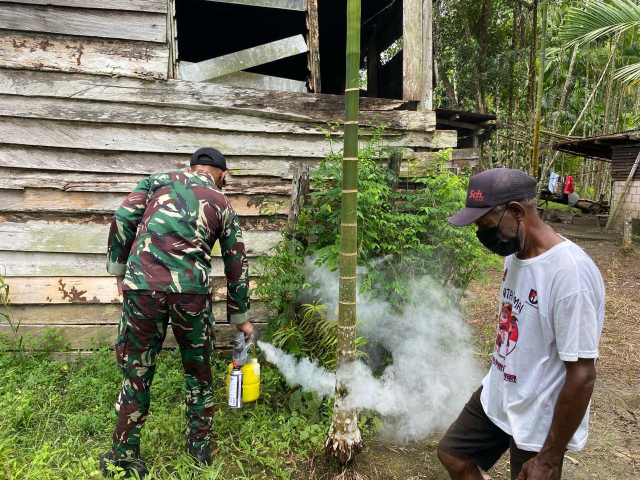 PUKANEWS.COM, KEEROM – Dalam upaya mencegah penyebaran malaria, Satgas Yonif 131/Brajasakti melalui Pos Ampas melaksanakan kegiatan fogging di rumah-rumah warga Kampung Ampas, Distrik Waris, Papua, pada Minggu (27/04/2025).