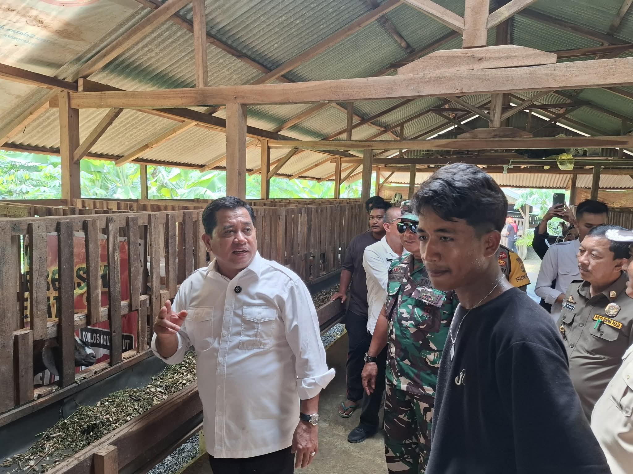 BANYUASIN I, PUKANEWS.COM — Setelah meletakkan Batu Pertama Koperasi Merah Putih, Bupati Banyuasin, Dr. H. Askolani, SH., MH meninjau Duren Ijo Peternakan Dan Penggemukan Kambing yang menjadi binaan langsung dari Desa Duren Ijo, Kecamatan Banyuasin I, Rabu (26/11/2025).