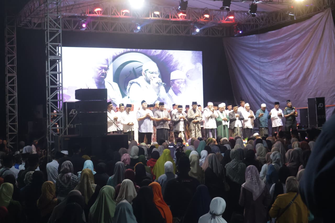 BLITAR, PUKANEWS.COM – Pondok Pesantren Roudlotul Hanan Desa Sawentar Kecamatan Kanigoro Kabupaten Blitar, menjadi pusat kegiatan doa bersama untuk bangsa dan Kabupaten Blitar agar senantiasa berdaya, berjaya, serta aman sentosa, Rabu malam (17/9/2025). Ribuan jamaah hadir memadati lokasi, termasuk Forkopimda Kabupaten Blitar, ulama, habaib, serta tokoh masyarakat.