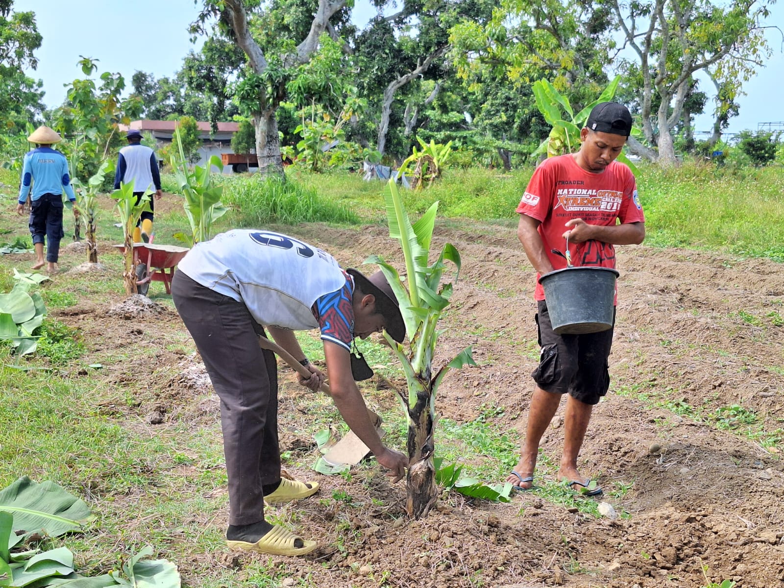 Warga Binaan Pemasyarakatan (WBP) Lapas Terbuka Kendal menanam tanaman pisang jenis Morosebo di kawasan pembinaan Lapas Produktif Kendal. Dengan didampingi para petugas Lapas, wargabinaan dengan penuh semangat menyiapkan tempat penamanan sampai dengan membantu proses penamanan, Rabu (30/10)