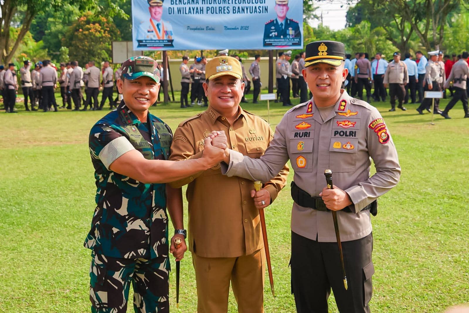 Berlangsung di Halaman Markas Kepolisian Resor Banyuasin, apel kesiapan tanggap darurat dipimpin dan dihadiri langsung oleh Bupati Banyuasin, Dr. H. Askolani, S.H., M.H., Kapolres Banyuasin, AKBP Ruri Prastowo, S.H., S.I.K., M.I.K., Dandim O430/ Banyuasin terbaru, Letkol. Inf. Handoyo Yudi Prasetyo, S.E., M.H.I., M.Han., Kepala BPBD Banyuasin, Reza Agust Perdana, S.E., M.Si, Jajaran Kepala OPD yang mewakili, Manggala Agni, Yanzikon 12/KJ, dan para tamu undangan.