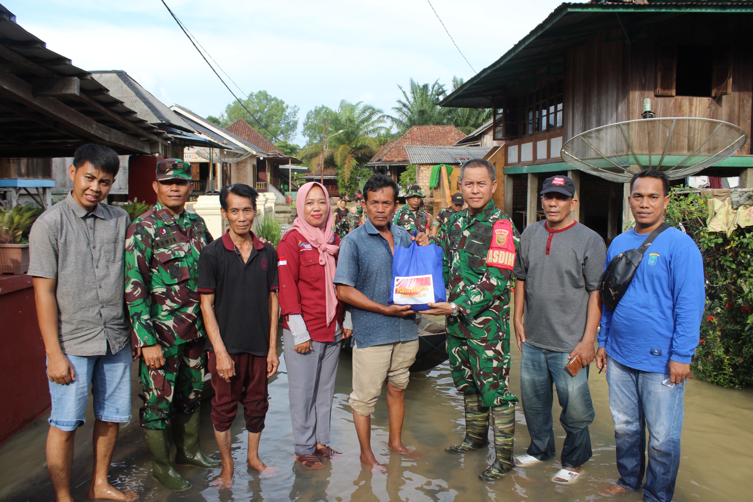 Gerak Cepat, Kodim 0402/OKI Distribusikan Bantuan Sembako untuk Korban Banjir di Kecamatan Lempuing dan Mesuji