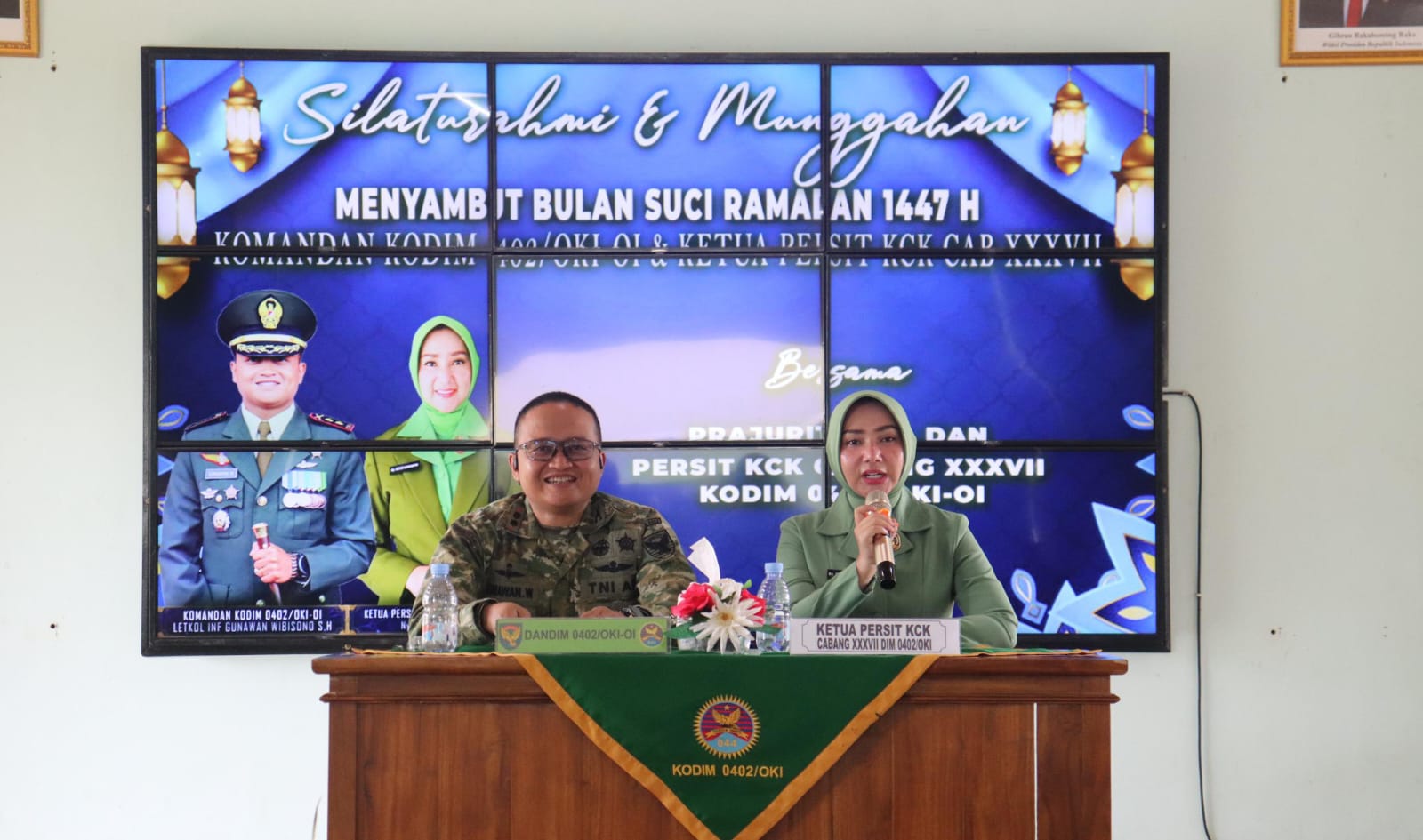 PukaNews, Ogan Komering Ilir — Rabu,18 Februari 2026 – Dalam rangka menyambut Bulan Suci Ramadan 1447 Hijriah, Kodim 0402/OKI-OI menggelar acara Silaturahmi dan Munggahan bersama prajurit, Aparatur Sipil Negara (ASN), serta Persit Kartika Chandra Kirana Cabang XXXVII. Kegiatan tersebut berlangsung penuh kekeluargaan di Aula Darawangsa Makodim 0402/OKI-OI.