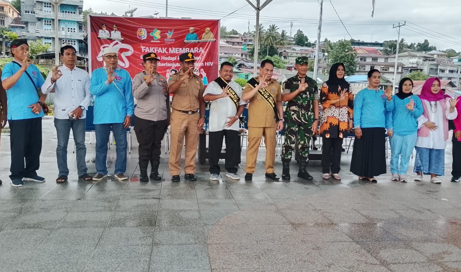 Komandan Kodim 1803/Fakfak Letkol Inf Wahlin Rahman, S.Pd., menghadiri peringatan Hari AIDS Sedunia 2025 yang digelar di Ruang Terbuka Hijau K.H. Ma’ruf Amin, Fakfak, Papua Barat. Kegiatan ini menjadi ajang seruan bersama untuk mencegah penyebaran HIV dan menghapus stigma dan diskriminasi di tengah masyarakat. (FOTO: IMRAN ALWI FUAD)