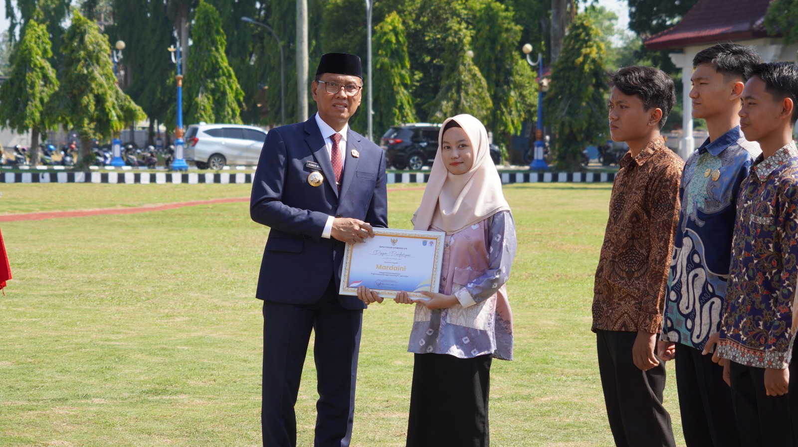 OKI, PukaNews.com — Sebanyak 11 orang pemuda berprestasi di Kabupaten menerima penghargaan dari Pj. Bupati OKI Ir. Asmar Wijaya, M.Si. Salah satu penerima penghargaan atas nama Mardaini, pelajar putri SMAN 3 Kayuagung kelahiran 27 Juni 2007 yang memiliki sederet prestasi mentereng diantaranya menjadi Peraih Medali Emas Bidang Biologi Olimpiade Pelajar Nusantara tingkat Nasional Tahun 2023 serta 16 prestasi prestisius lainnya.