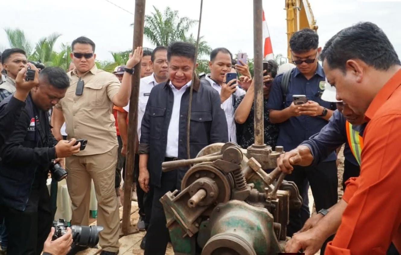 BANYUASIN, PUKANEWS — Gubernur Sumatera Selatan H. Herman Deru (HD) , secara resmi melakukan groundbreaking pembangunan jembatan Duplikat Jembatan Tanah Kering dan Peningkatan Jalan Poros Pulau Rimau – Selat Penuguan Kab. Banyuasin. Bertempat di Desa Mukut Kecamatan Pulau Rimau Kab. Banyuasin, Kamis (23/10/2025).