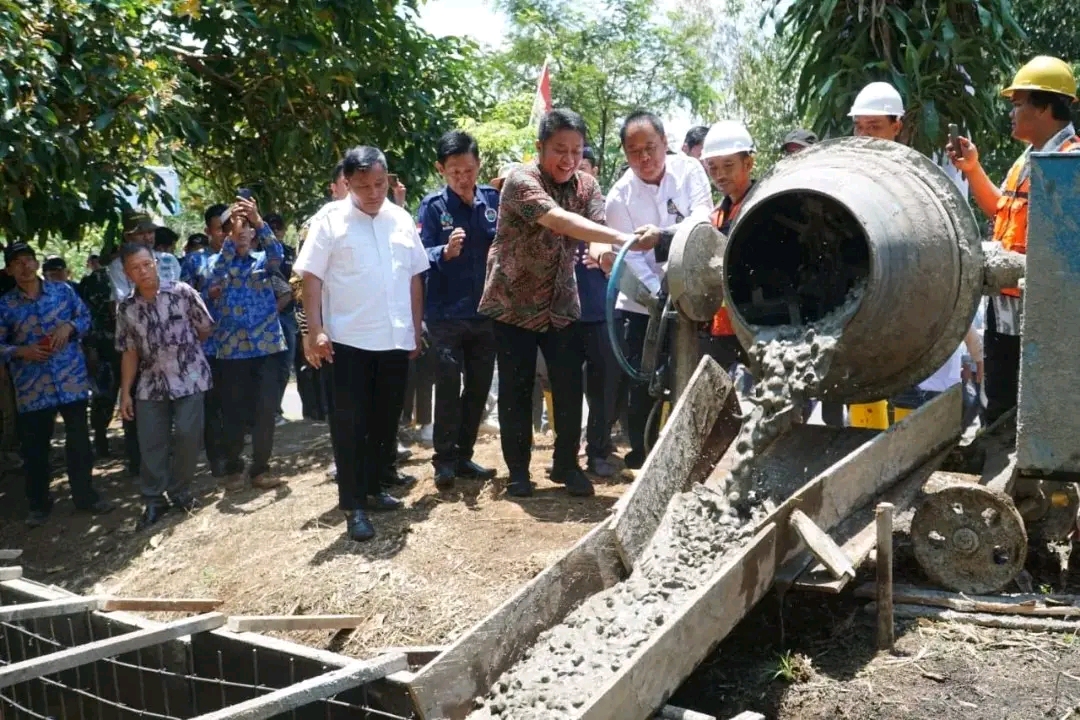 Peresmian ditandai dengan penutupan pintu air irigasi dan pengecoran perdana di lokasi irigasi Desa Tanjung Baru, Kabupaten Lahat, Minggu (10/9/2023).