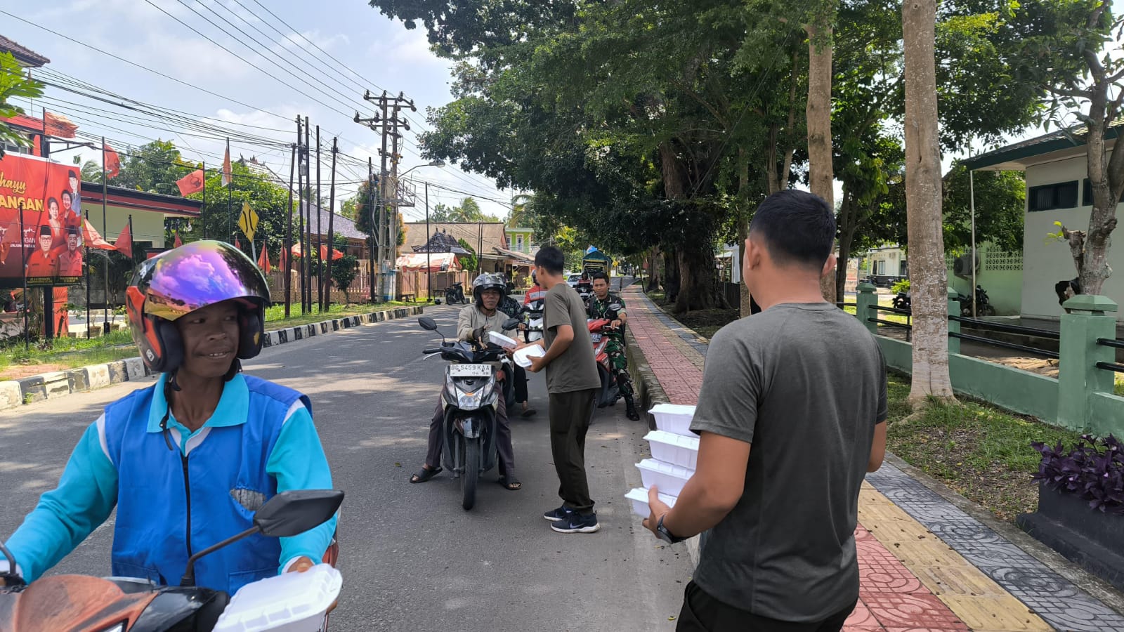 PukaNews.com, OKI – Kodim 0402/OKI menggelar kegiatan Bhakti sosial yaitu Jum’at berkah dengan berbagi makanan berupa nasi kotak kepada masyarakat di depan Makodim 0402/OKI jalan Letnan Darna Jambi Kelurahan Paku Kecamatan Kayuagung Kabupaten Ogan Komering Ilir, Jum’at (7/02/2025).