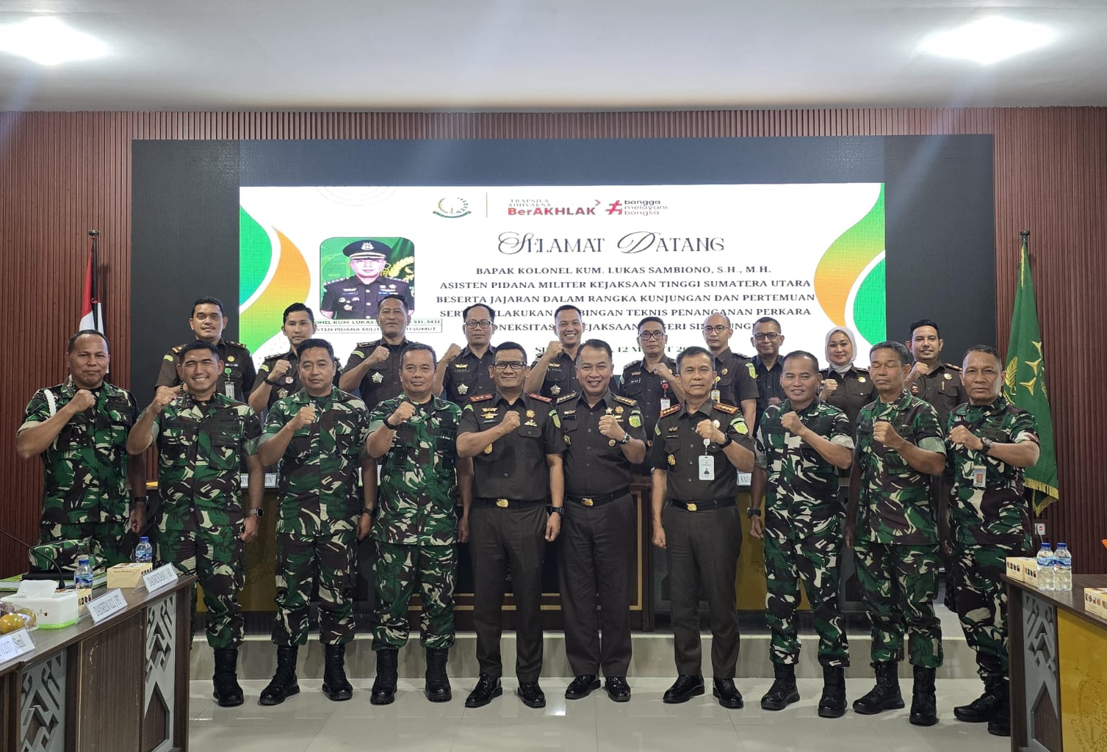 PukaNews, Simalungun — Kajari Simalungun menerima kunjungan Asisten Pidana Militer Kejati sumatera Utara kolonel Kum Lukas Sambiono, SH., MH beserta jajaran dalam rangka Bimbingan Teknis Penangan Perkara Koneksitas diwilayah hukum Kejari Simalungun, Kamis (12/3).