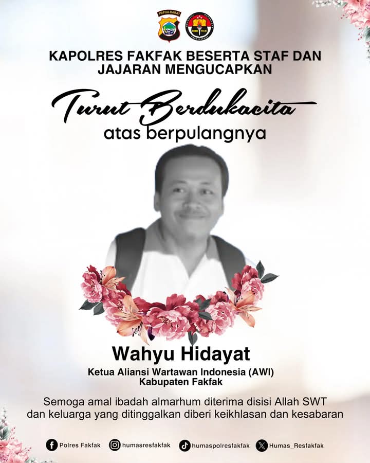 Kapolres menambahkan, Almarhum Wahyu Hidayat dikenal luas karena kontribusinya dalam dunia jurnalistik, khususnya di wilayah Fakfak. Karya-karyanya dan semangatnya dalam memperjuangkan kebebasan pers akan selalu dikenang oleh rekan-rekan seprofesi dan masyarakat luas.