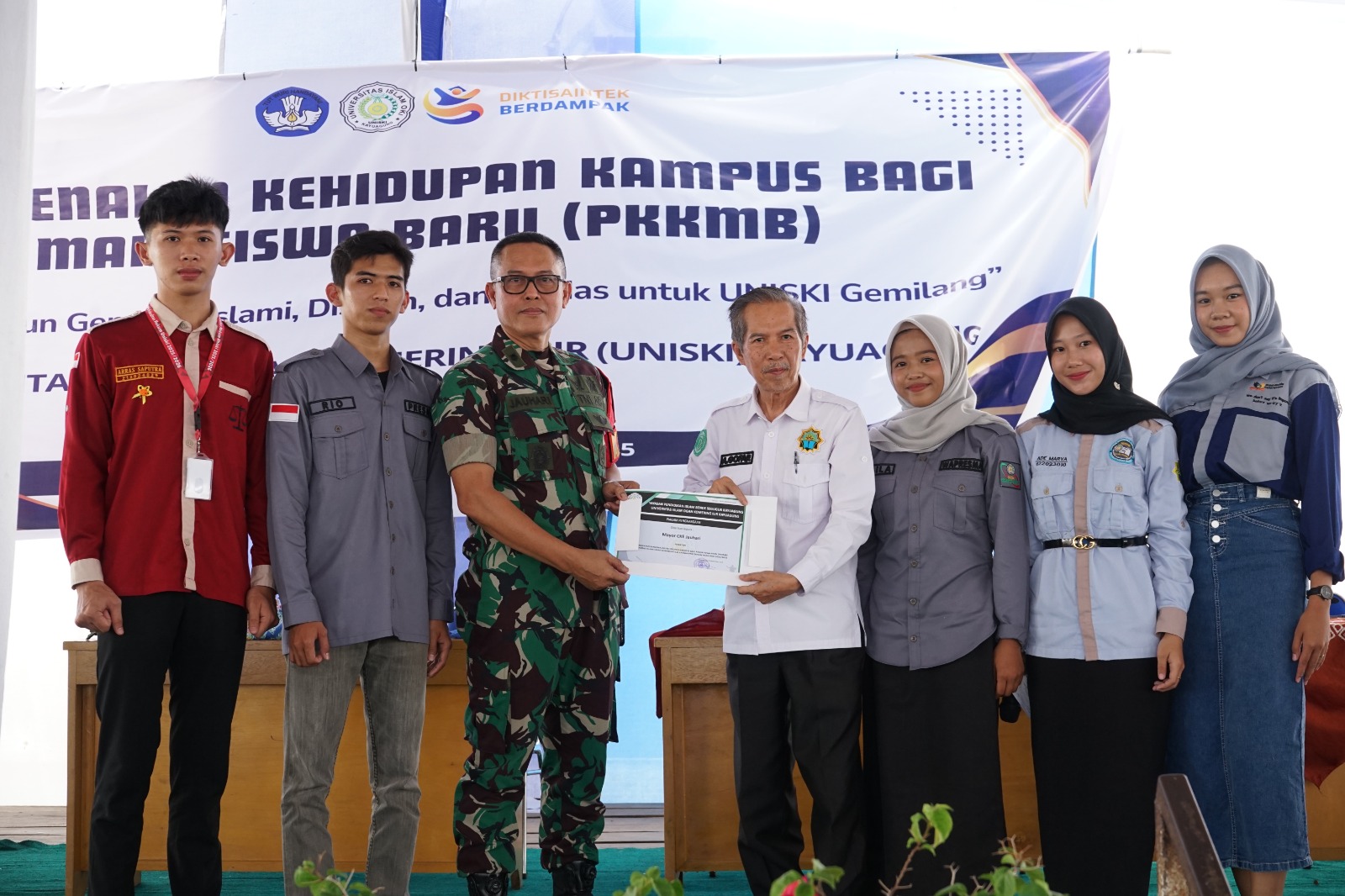 Kegiatan ini turut dihadiri oleh Ketua Yayasan UNISKI, Bapak Dr. H. A. Ghofar Saleh, S.Pd., M., yang memberikan apresiasi atas dukungan Kodim 0402/OKI dalam membentuk karakter mahasiswa baru yang cinta tanah air dan berwawasan kebangsaan.