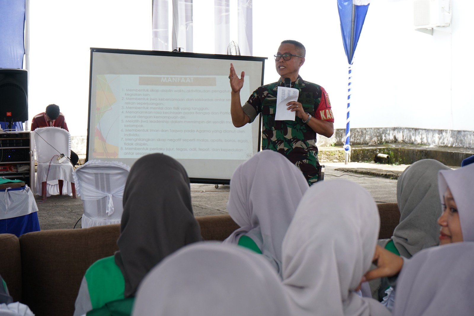 KAYUAGUNG, PUKANEWS.COM – Kepala Staf Kodim 0402/Ogan Komering Ilir (Kasdim), Mayor CKE Jauhari, menjadi pemateri dalam kegiatan Pengenalan Kehidupan Kampus bagi Mahasiswa Baru (PKKMB) Universitas Islam Ogan Komering Ilir (UNISKI) dengan menyampaikan materi penting tentang bela negara, Kamis (4/9/2025).