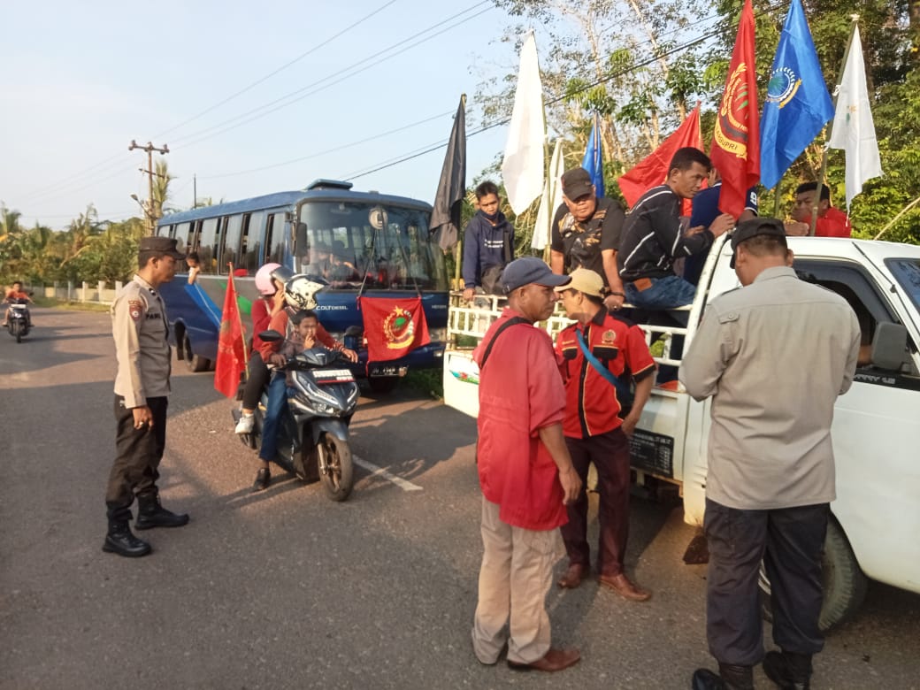 PUKANEES.COM, OGAN ILIR — Personel Kepolisian Sektor (Polsek) Muara Kuang, Ogan Ilir, Sumatera Selatan, turut serta secara aktif dalam pengawalan dan pengamanan sejumlah aksi unjuk rasa yang digelar dalam rangka memperingati Hari Buruh Internasional atau May Day pada hari ini, 1 Mei 2025. Pengamanan dilakukan di dua lokasi berbeda di wilayah Provinsi Sumatera Selatan yang menjadi titik konsentrasi massa buruh.