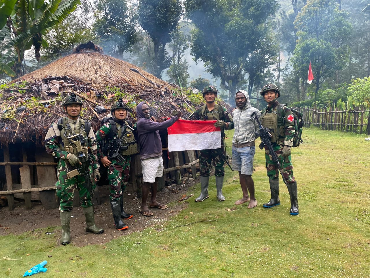PUKANEWS.COM, BEOGA – Kehangatan dan semangat merah putih hadir di Kampung Beoga, Distrik Beoga, Kabupaten Puncak, Papua, saat personel Pos/Titik Kuat Beoga dari Satgas Yonif 700/Wira Yudha Cakti melakukan kegiatan anjangsana ke honai-honai warga. Dalam kegiatan ini, prajurit TNI tidak hanya membagikan bendera Merah Putih sebagai simbol nasionalisme, tetapi juga menyalurkan bantuan berupa makanan kepada warga yang tinggal di daerah pedalaman tersebut. (20/04/2025)