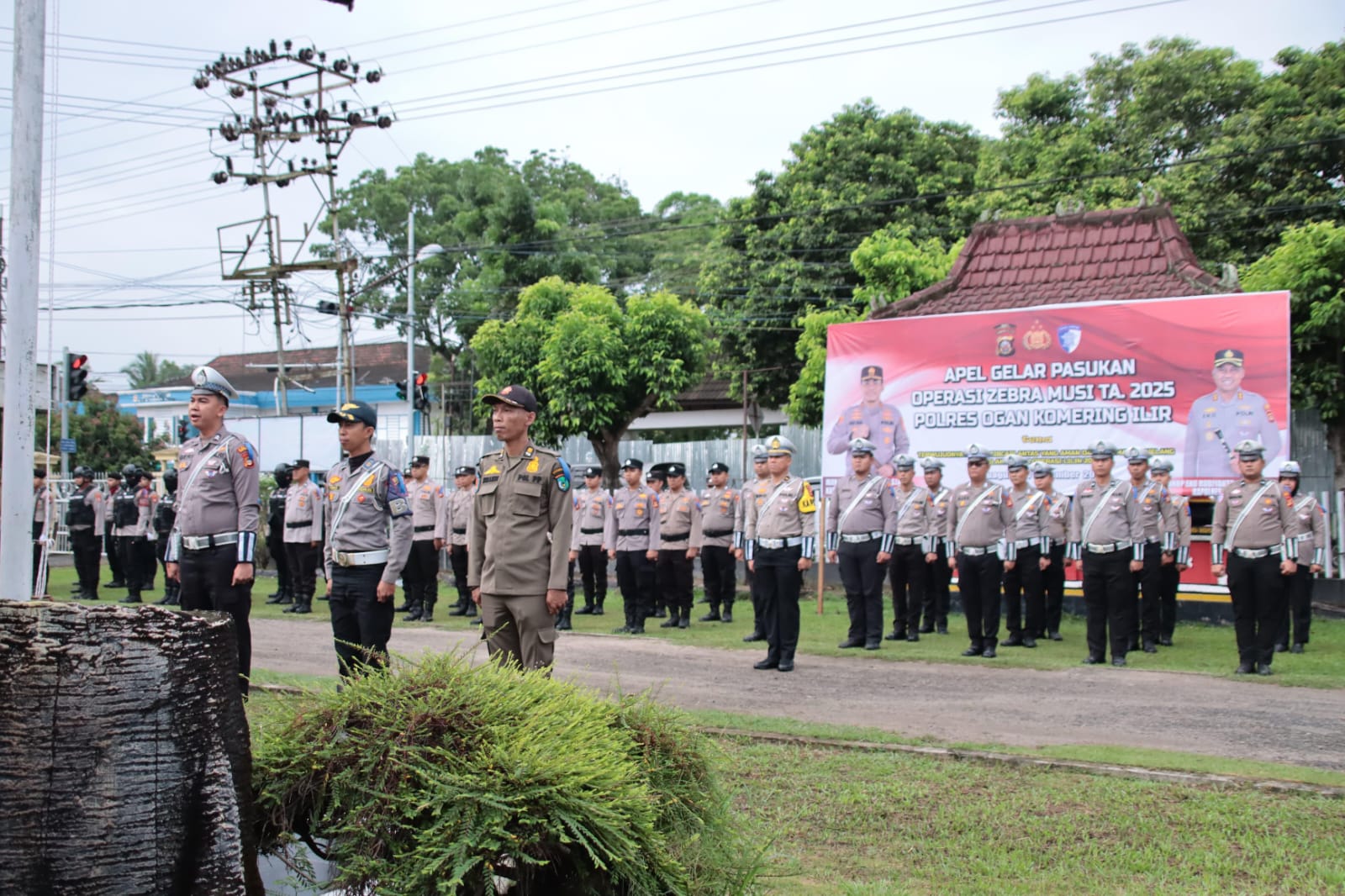 KAYUAGUNG, OKI — PUKANEWS.COM personel Gabungan Polres Ogan Komering Ilir (OKI), Dishub dan Satpol PP mengikuti Apel Gelar Pasukan Operasi Zebra Musi 2025 yang digelar di halaman Mapolsek Kayuagung, Senin (17/11/25). Apel ini menjadi momentum persiapan untuk pelaksanaan Operasi Zebra Musi 2025, yang berlangsung serentak di seluruh jajaran Polda Sumatera Selatan pada 17 hingga 30 November 2025.