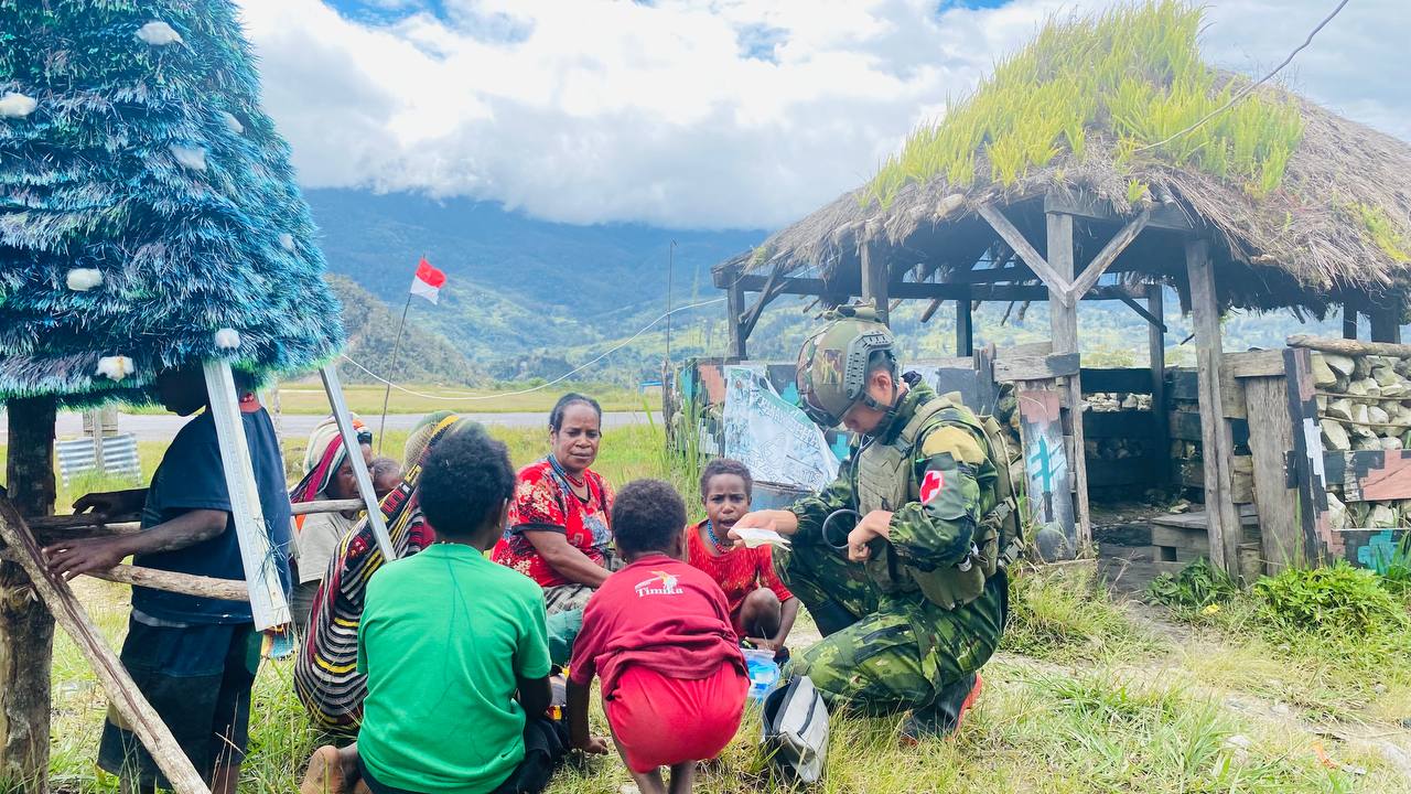 Dengan latar belakang pegunungan Papua yang megah dan suasana desa yang damai, momen kebersamaan antara TNI dan masyarakat ini menjadi bukti bahwa pelayanan kesehatan bisa menjadi jembatan kemanusiaan yang tulus dan bermakna.