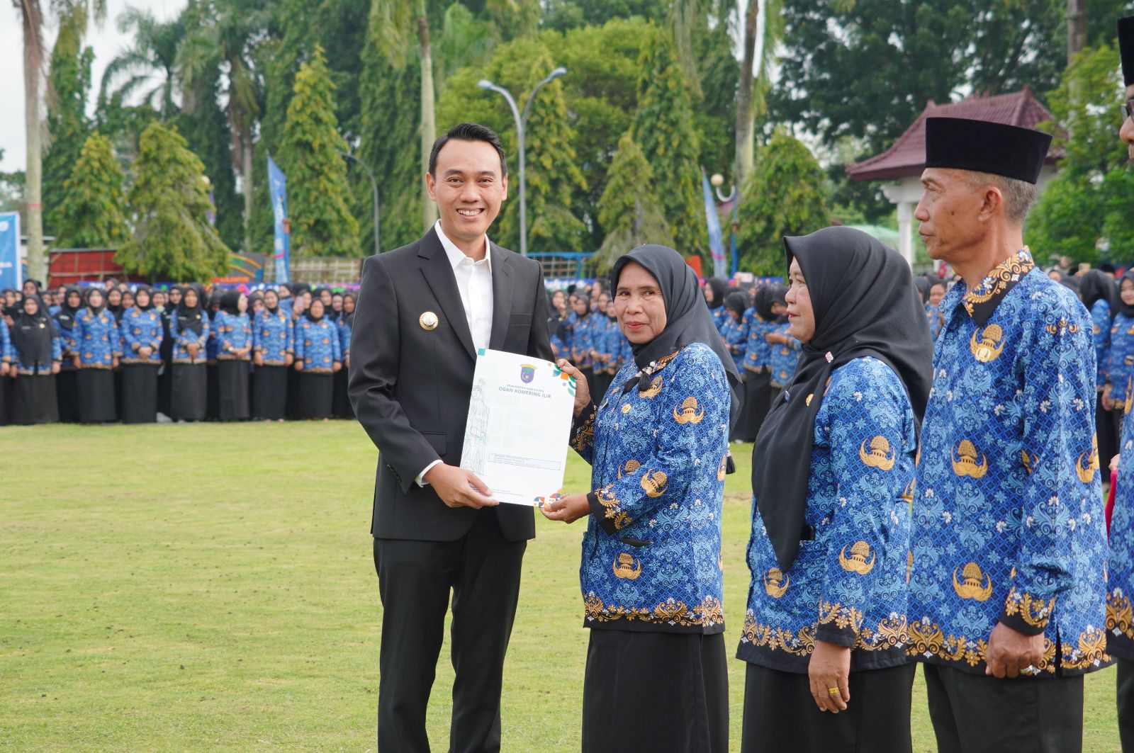 Penyerahan Surat Keputusan (SK) PPPK paruh waktu dilakukan secara simbolis di Lapangan Upacara Kantor Bupati OKI, Senin (29 Desember 2025). SK diserahkan langsung oleh Bupati OKI H. Muchendi kepada perwakilan tenaga honorer.