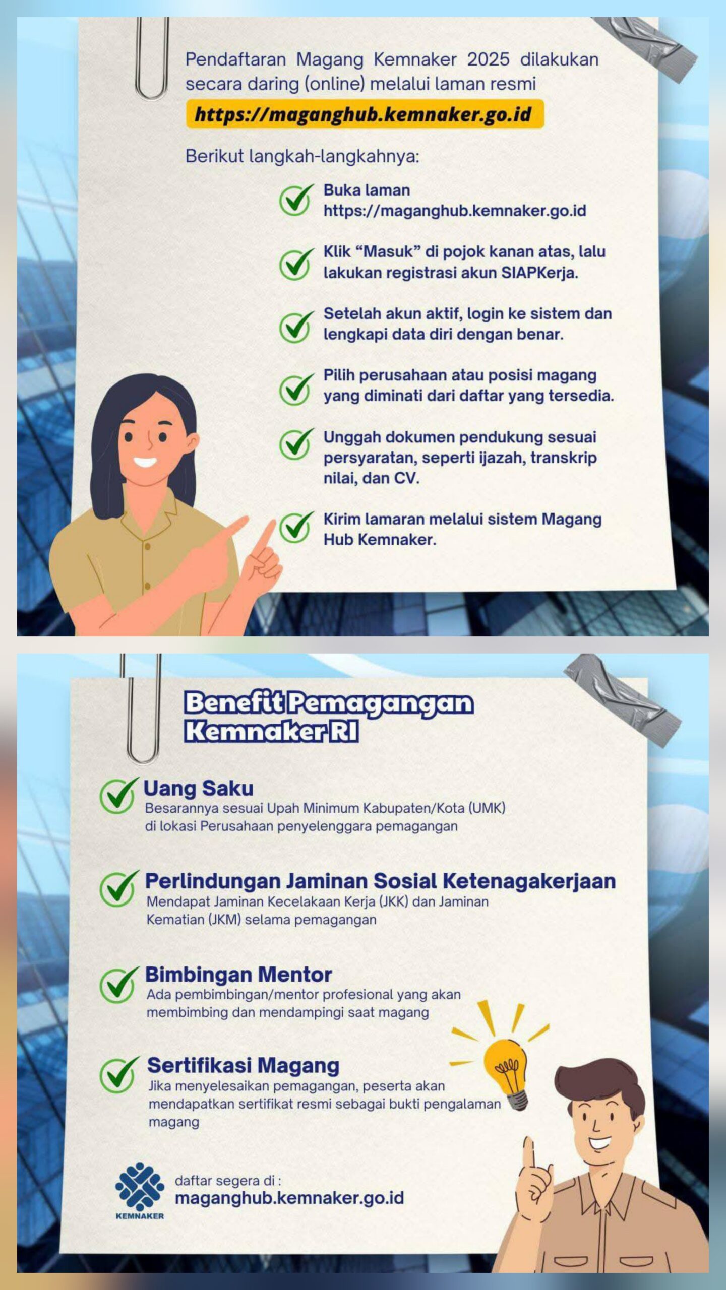 “Pendaftaran Magang Kemnaker 2025 telah dibuka sejak 7 Oktober 2025. Dengan perpanjangan ini, kami ingin memastikan lebih banyak lulusan mendapatkan kesempatan. Daftar sekarang dan raih pengalaman kerja yang dapat mengubah hidup Anda!”