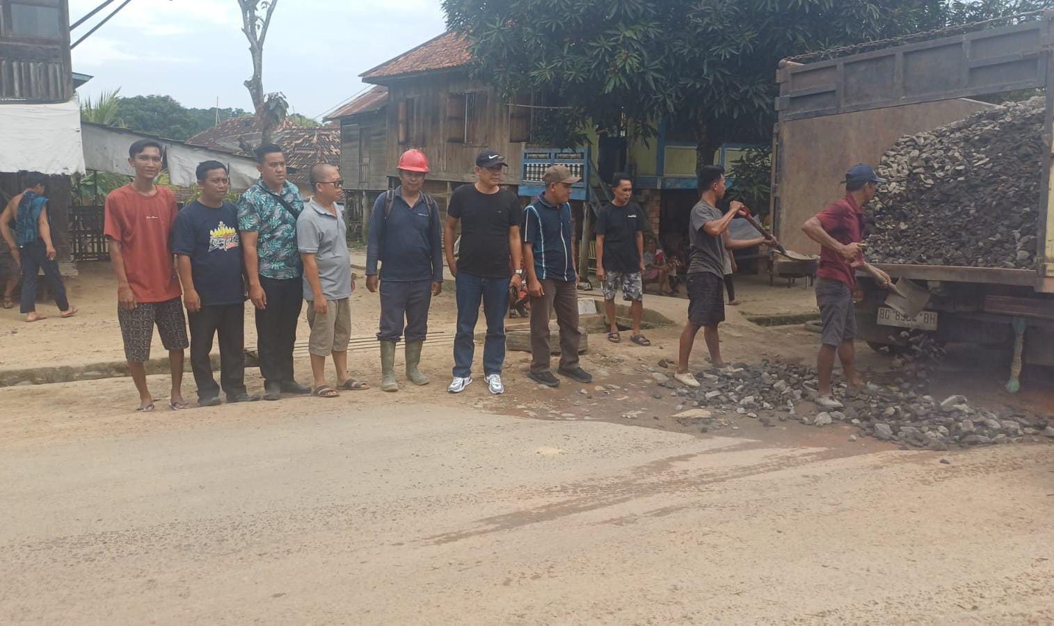 Jalan lintas kabupaten di desa Gajah Mati yang sebelumnya mengalami kerusakan dan berlubang dinilai membahayakan keselamatan pengguna jalan serta menghambat mobilitas hasil pertanian dan perkebunan masyarakat. Melalui koordinasi yang baik antara Plasma GPI, Pemerintah Desa Gajah Mati, dan Pemerintah Kecamatan Sungai Keruh, penimbunan dilakukan sebagai langkah cepat dan solutif.