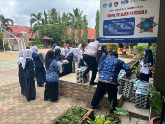 Pembagian makanan bergizi ini dimulai pukul 10.00 WIB dan dihadiri oleh sejumlah pejabat penting, antara lain Kepala Sekolah SMPN 1 Indralaya, Kepala Dinas Kesehatan Kabupaten Ogan Ilir, Kepala Dinas Pendidikan dan Kebudayaan Kabupaten Ogan Ilir, Danramil Indralaya, serta perwakilan dari Polsek Indralaya yang diwakili oleh Kasium Polsek Indralaya.