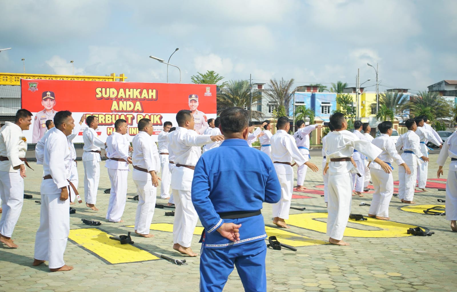 Kapolres OKI AKBP Eko Rubiyanto, SH, SIK, MH, mengatakan bahwa ujian bela diri merupakan bagian dari upaya menjaga kesiapan personel, baik secara fisik maupun mental.