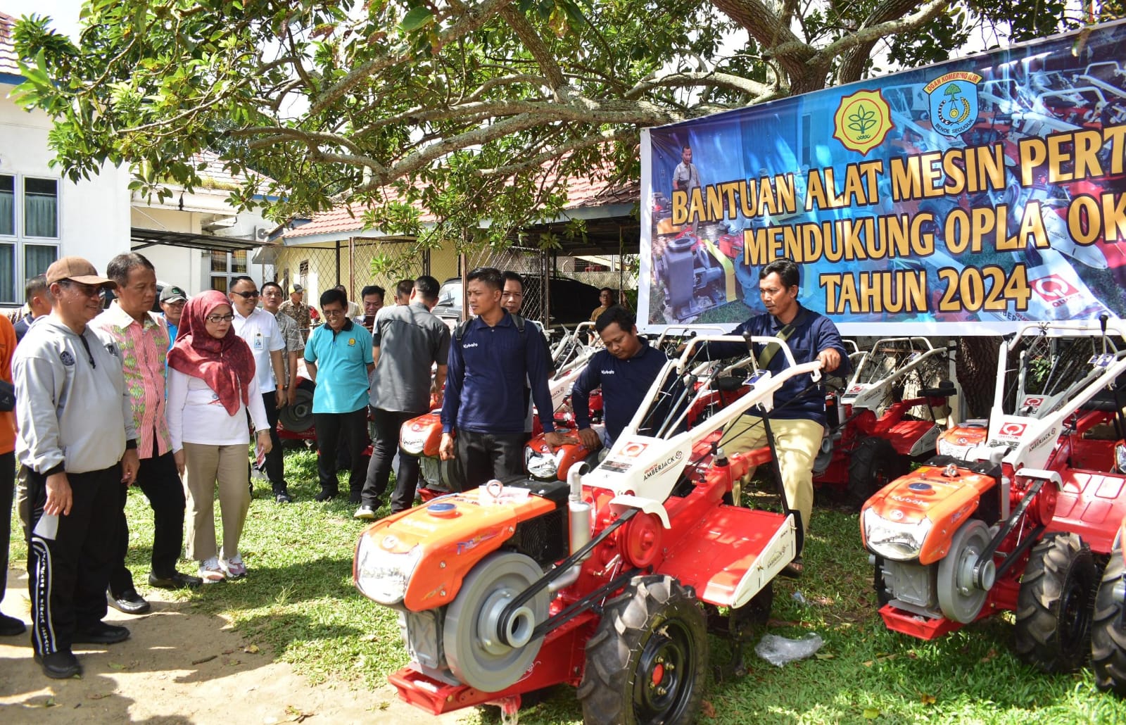 Sebanyak 129 alat mesin pertanian (Alsintan) berupa 35 unit traktor roda empat, 84 traktor roda dua dan 10 unit rotapator diserahkan oleh Pj. Bupati Ogan Komering Ilir (OKI) Asmar wijaya kepada Gabungan Kelompok Tan (Gapoktan) di halaman Kantor Dinas Pertanian OKI, Jum’at, (14/6/24).