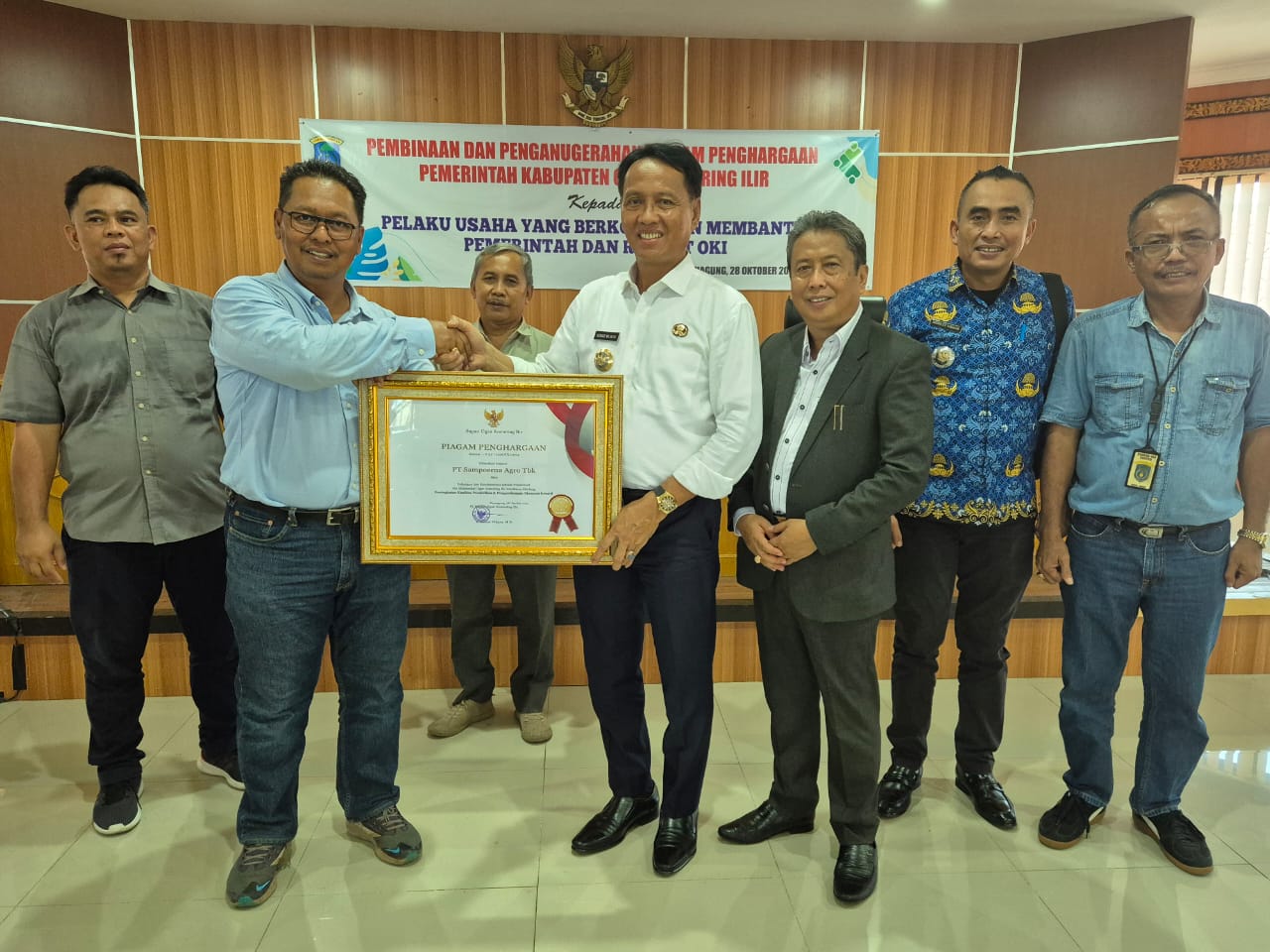 CSR Awards tersebut diterima langsung oleh Managemen Sampoerna Agro Alexander O. Purba GM Area Tj Sari dan diserahkan secara langsung oleh Pj. Bupati OKI Ir. Asmar Wijaya Msi didampingi Assisten II HM Lubis di Ruang Rapat Bende Seguguk II Pemda OKI pada Senin, 28 Oktober 2024.