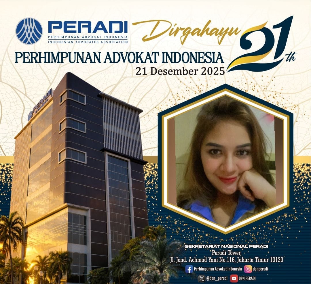 PALEMBANG, PUKANEWS.COM — Perhimpunan Advokat Indonesia (PERADI) genap berusia 21 tahun. Momentum hari jadi ini mendapat apresiasi dari berbagai kalangan, salah satunya dari Advokat Raden Ayu Widya Sari, SH., MH., yang menyampaikan ucapan selamat dan harapan besar bagi organisasi advokat terbesar di Indonesia tersebut.