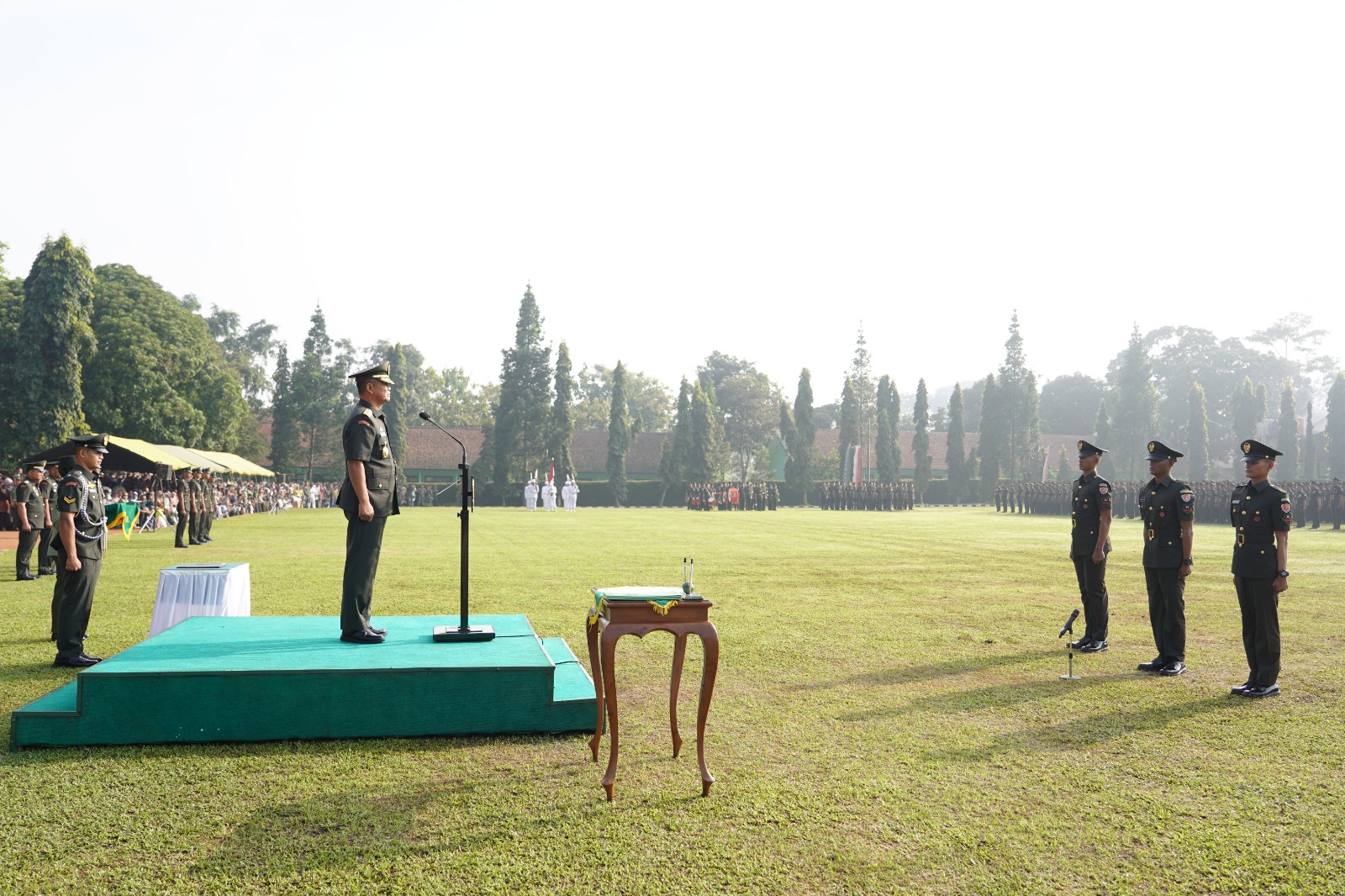 Membacakan amanat tertulis Kepala Staf Angkatan Darat (Kasad) Jenderal TNI Maruli Simanjuntak, M.Sc., Wakasad menyampaikan apresiasi atas semangat, kedisiplinan, dan ketekunan para prajurit selama menjalani pendidikan.