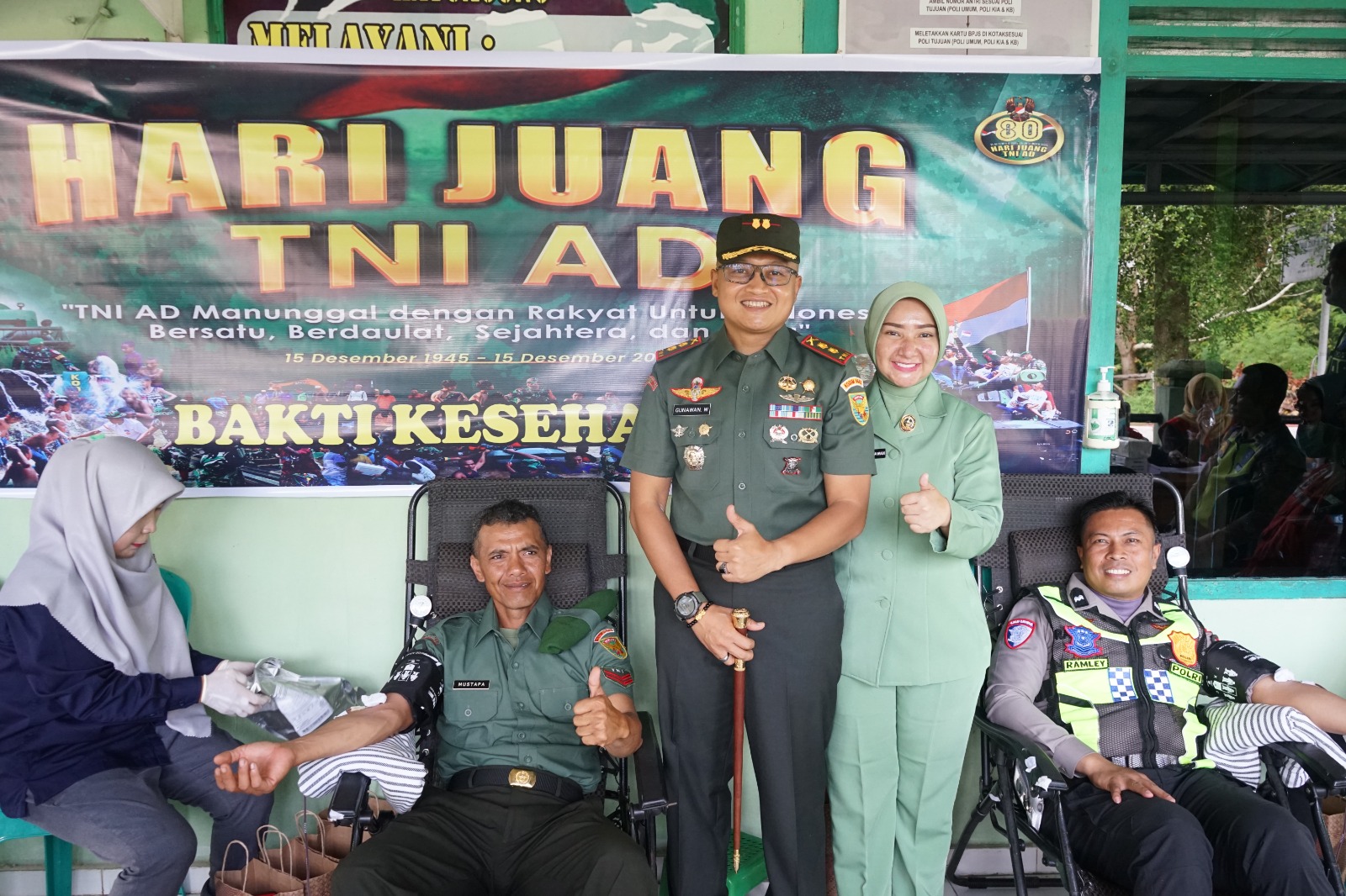 Kegiatan ini turut dihadiri oleh personel TNI dan Polri, para tenaga medis, serta masyarakat dari berbagai kalangan. Hadir pula Ibu Ketua Persit KCK Cabang XXXVII Dim 0402, Ny. Dessi Gunawan, beserta seluruh anggota Persit yang ikut ambil bagian dalam kegiatan donor darah maupun membantu pelayanan kesehatan di lokasi.