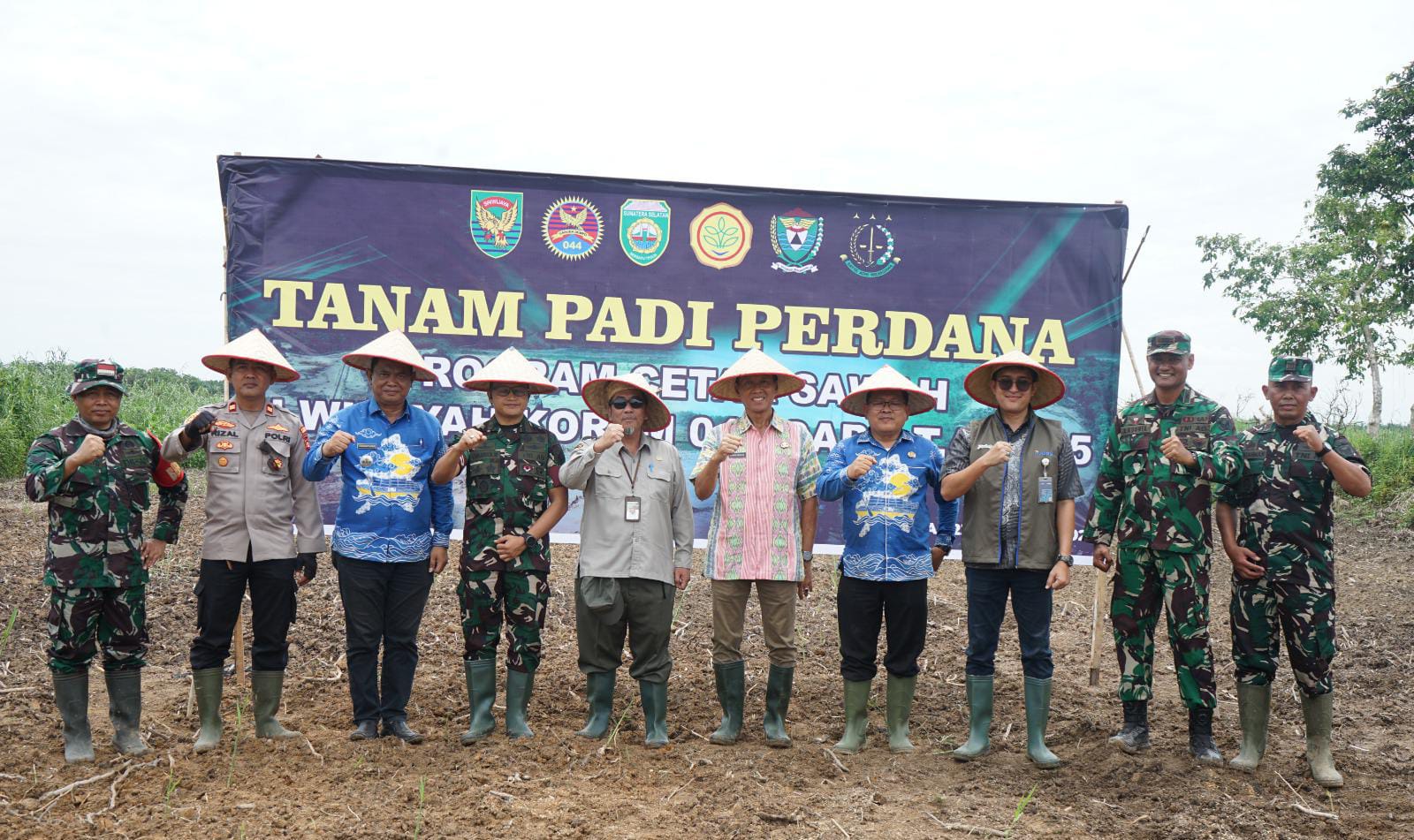 OKI, PUKANEWS — Komando Distrik Militer (Kodim) 0402/OKI-OI melaksanakan kegiatan Tanam Padi Perdana Program Cetak Sawah Tahun 2025 seluas 20 Hektare yang dipusatkan di Desa Benawa, Kecamatan Teluk Gelam, Kabupaten Ogan Komering Ilir, pada Kamis (23/10).