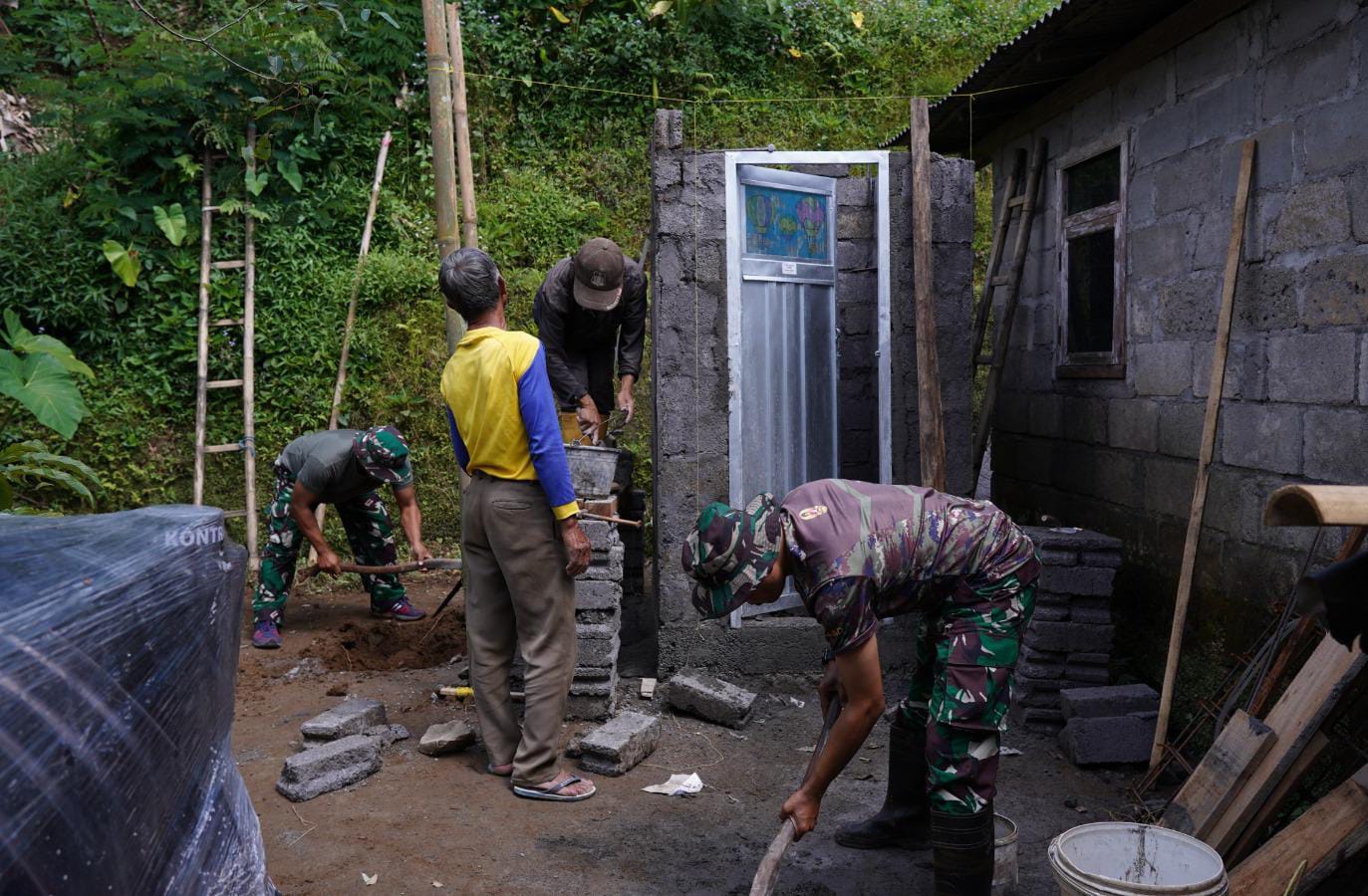 Kegiatan pemasangan dinding MCK ini bertujuan untuk menyediakan sarana sanitasi yang layak bagi warga, sehingga kebersihan lingkungan dan kesehatan keluarga dapat lebih terjaga. Personel Satgas TMMD bersama warga setempat bergotong royong menyelesaikan pekerjaan dengan penuh semangat kebersamaan.