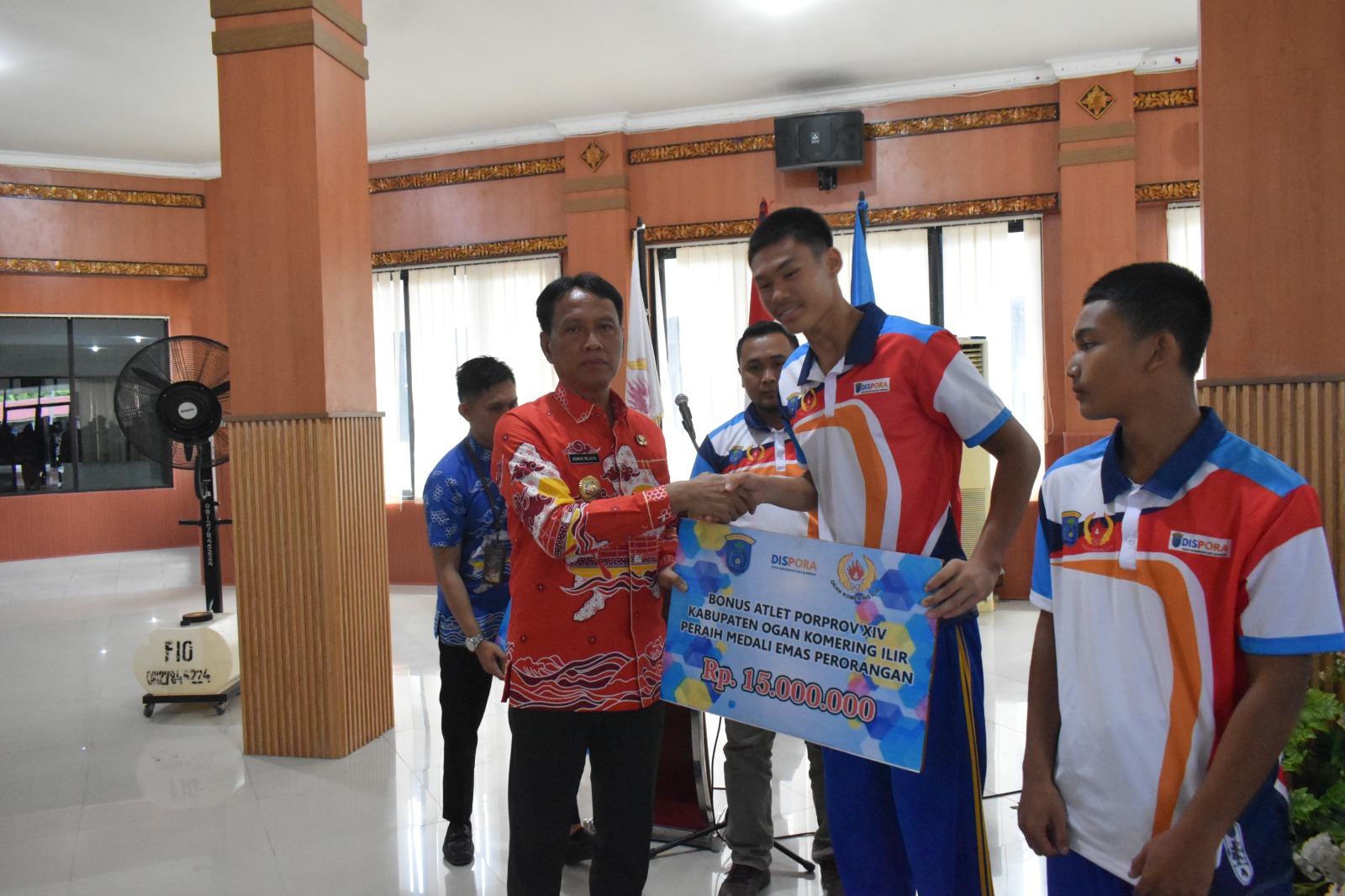 OKI, PukaNews.com — Pemerintah Kabupaten Ogan Komering Ilir (OKI) secara resmi memberikan penghargaan berupa bonus kepada para atlet dan pelatih yang telah mengharumkan nama daerah dalam ajang Pekan Olahraga Provinsi (Porprov) Lahat. Penyerahan bonus ini dilakukan sebagai bentuk apresiasi atas kerja keras dan dedikasi mereka selama kompetisi berlangsung.