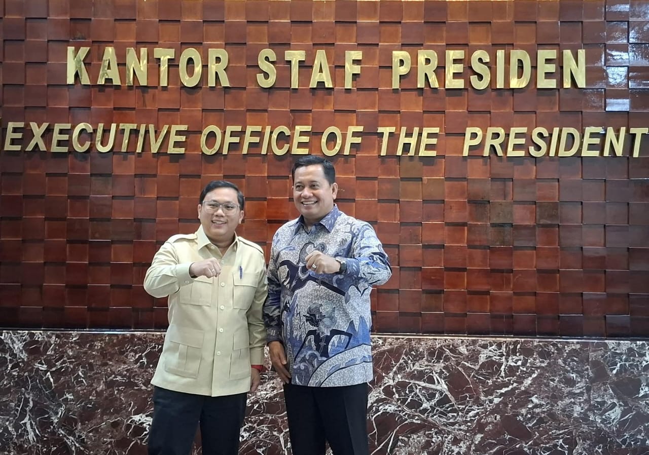Kedatangan Bupati Banyuasin Askolani disambut langsung oleh Staf Khusus Kepala Staf Kepresidenan, Timothy Ivan Triyono, Kamis (13/11/2025).