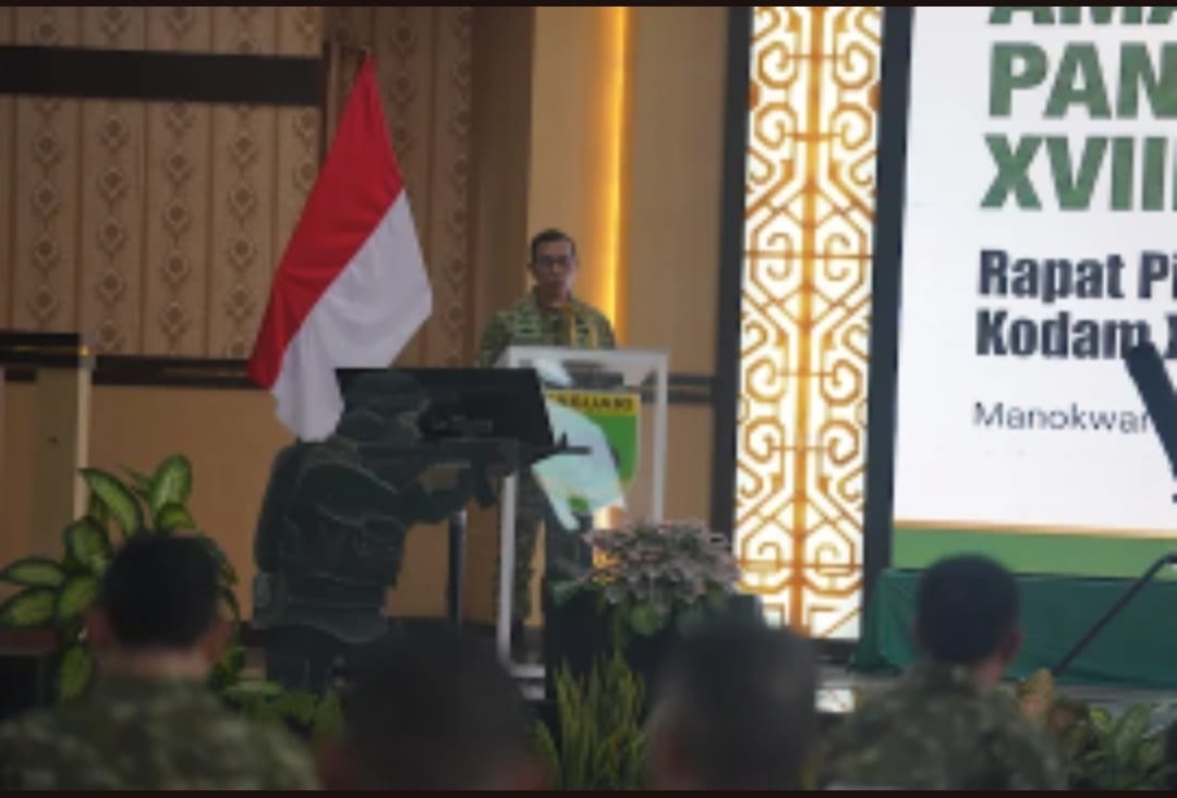 PUKANEWS, MANOKWARI, PAPUA BARAT — Komandan Korem (Danrem) 182/Jazirah Onim, Kolonel Inf Irwan Budiana menghadiri Apel Komandan Satuan (Dansat) TNI Angkatan Darat Tahun Anggaran 2026 yang digelar di Markas Komando (Mako) Kodam XVIII/Kasuari, Kampung Arfai, Distrik Manokwari Selatan, Kabupaten Manokwari, Papua Barat, Rabu (25/3/2026).