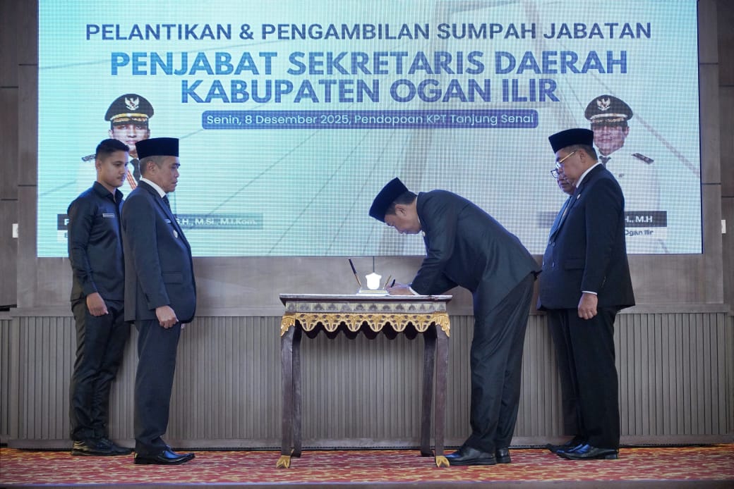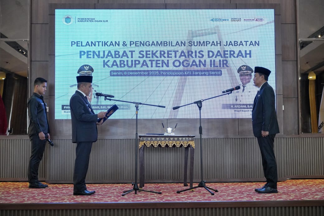 OGAN ILIR, PUKANEWS.COM — Pemerintah Kabupaten Ogan Ilir resmi melantik Dicky Syailendra sebagai Penjabat (Pj) Sekretaris Daerah (Sekda) Ogan Ilir pada Senin (8/12/2025). Pelantikan yang berlangsung di Ruang Rapat Utama Kompleks Perkantoran Terpadu (KPT) Tanjung Senai, Indralaya, tersebut menandai berakhirnya masa jabatan H. Muhsin Abdullah yang memasuki purnatugas.