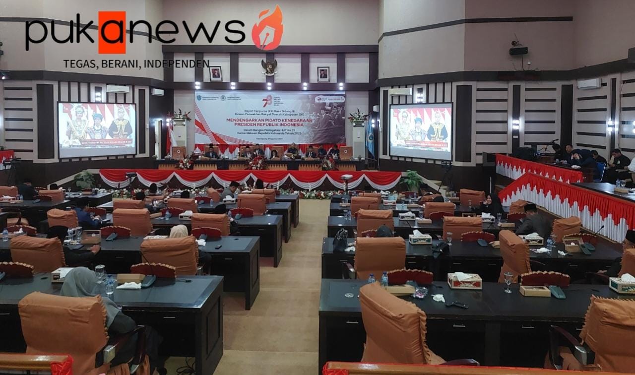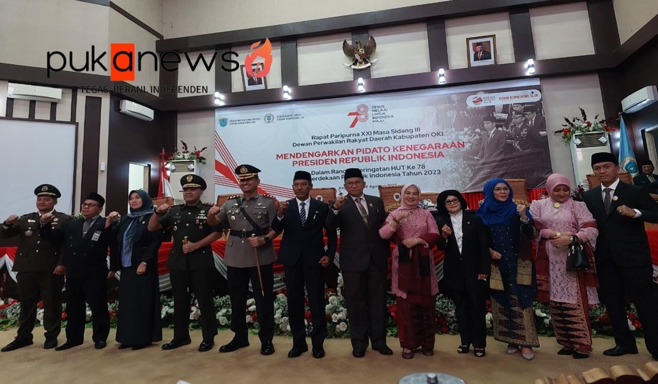 Pukanews.com, OKI – DPRD Kabupaten Ogam Komering Ilir menggelar rapat paripurna mendengarkan pidato kenegaraan Presiden RI dalam rangka memperingati HUT ke-78 Kemerdekaan RI tahun 2023, di Gedung DPRD setempat, Rabu (16/8/2023).