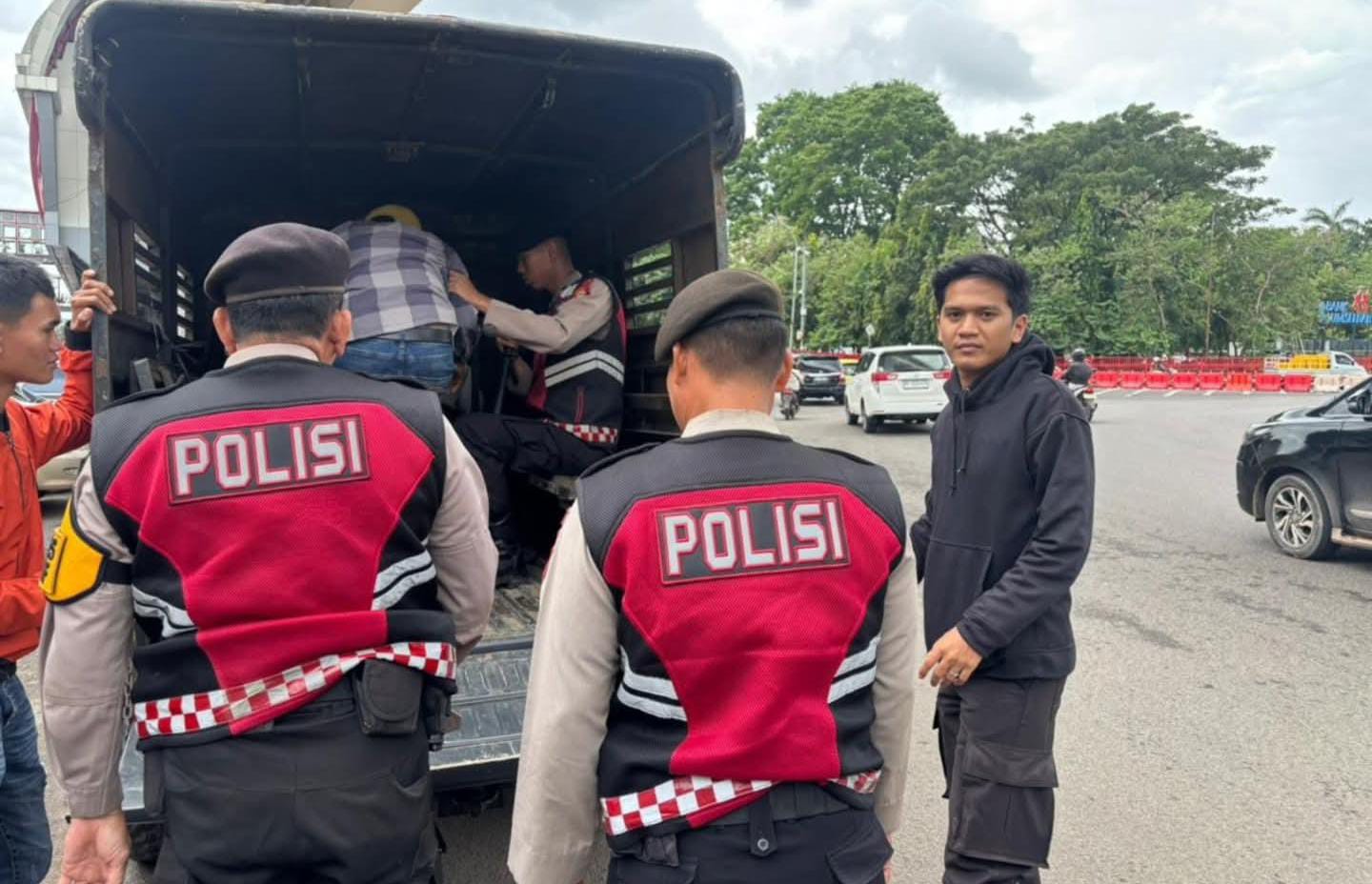 Ketiga orang yang diamankan masing-masing berinisial I (43), D (63), dan D (39). Selain mengamankan para terduga pelaku, polisi juga menyita sejumlah uang tunai dengan total puluhan ribu rupiah yang diduga hasil dari pungutan liar di sekitar lokasi kejadian.