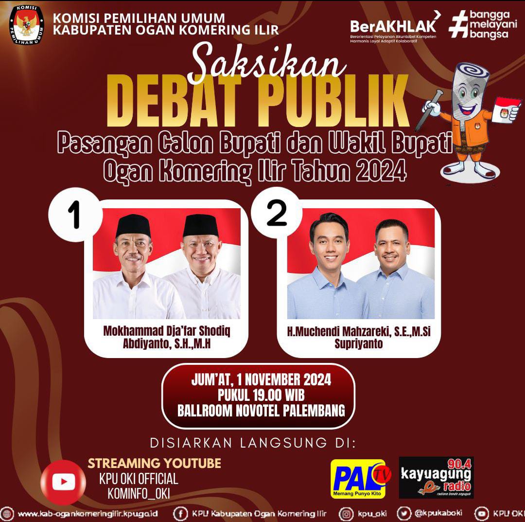 Bagi masyarakat OKI yang tidak dapat hadir secara langsung, debat ini akan disiarkan melalui saluran televisi lokal dan platform media sosial, sehingga masyarakat di pelosok desa sekalipun tetap bisa mengikuti proses ini dari jarak jauh.