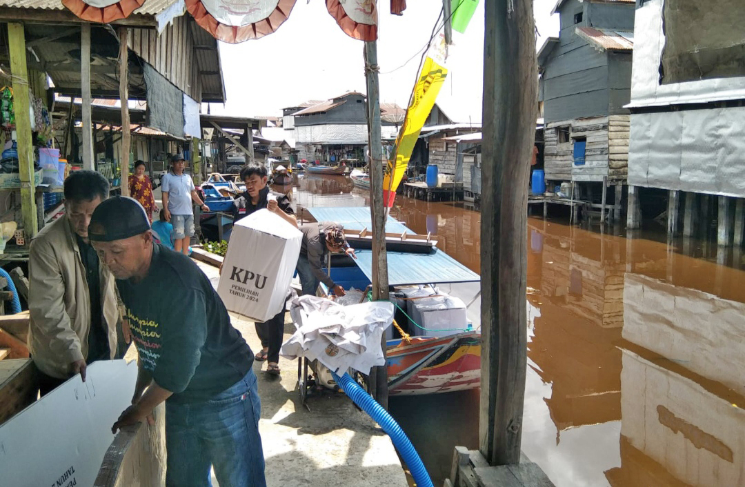 Karena banyaknya TPS yang terletak di daerah perairan, logistik pemilu diantar menggunakan transportasi laut, seperti kapal dan speedboat, mengingat jarak tempuh yang cukup jauh. Semua logistik pemilu dikawal dengan ketat oleh personel polisi dan TNI.