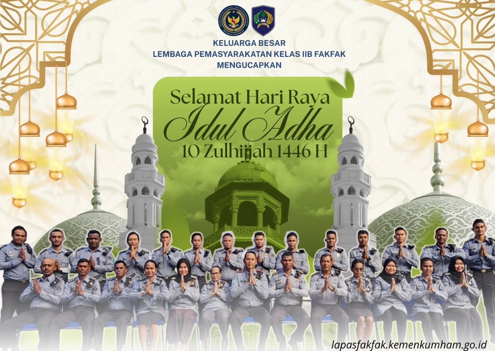 PUKA NEWS, Fakfak, Papua Barat — Keluarga besar Lembaga Pemasyarakatan (Lapas) Kelas IIB Fakfak mengucapkan Selamat Hari Raya Idul Adha 10 Zulhijah 1446 Hijriah kepada seluruh umat Muslim di tanah air. Momentum Idul Adha tahun ini dijadikan sebagai refleksi untuk memperkuat nilai pengorbanan, keikhlasan, dan kepedulian terhadap sesama.