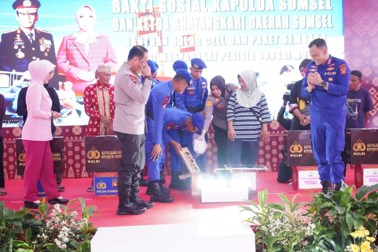 PukaNews.com, BANYUASIN — Dalam rangka meminimalisir kecelakaan bagi Nelayan dalam mencari ikan terutama malam hari, Kapolda Sumatera Selatan, Irjen Pol. Andi Rianto R. Djajadi, S. I. K., MH bersama Penjabat (Pj) Bupati Banyuasin, Muhammad Farid, S. STP., M. Si membagikan Solar Cell pada Bakti Sosial Kapolda Sumsel digelar di Terminal Gudang Sentra Serabut Kelapa, Desa Teluk Payo, Banyuasin II, Selasa (4/2/2025).