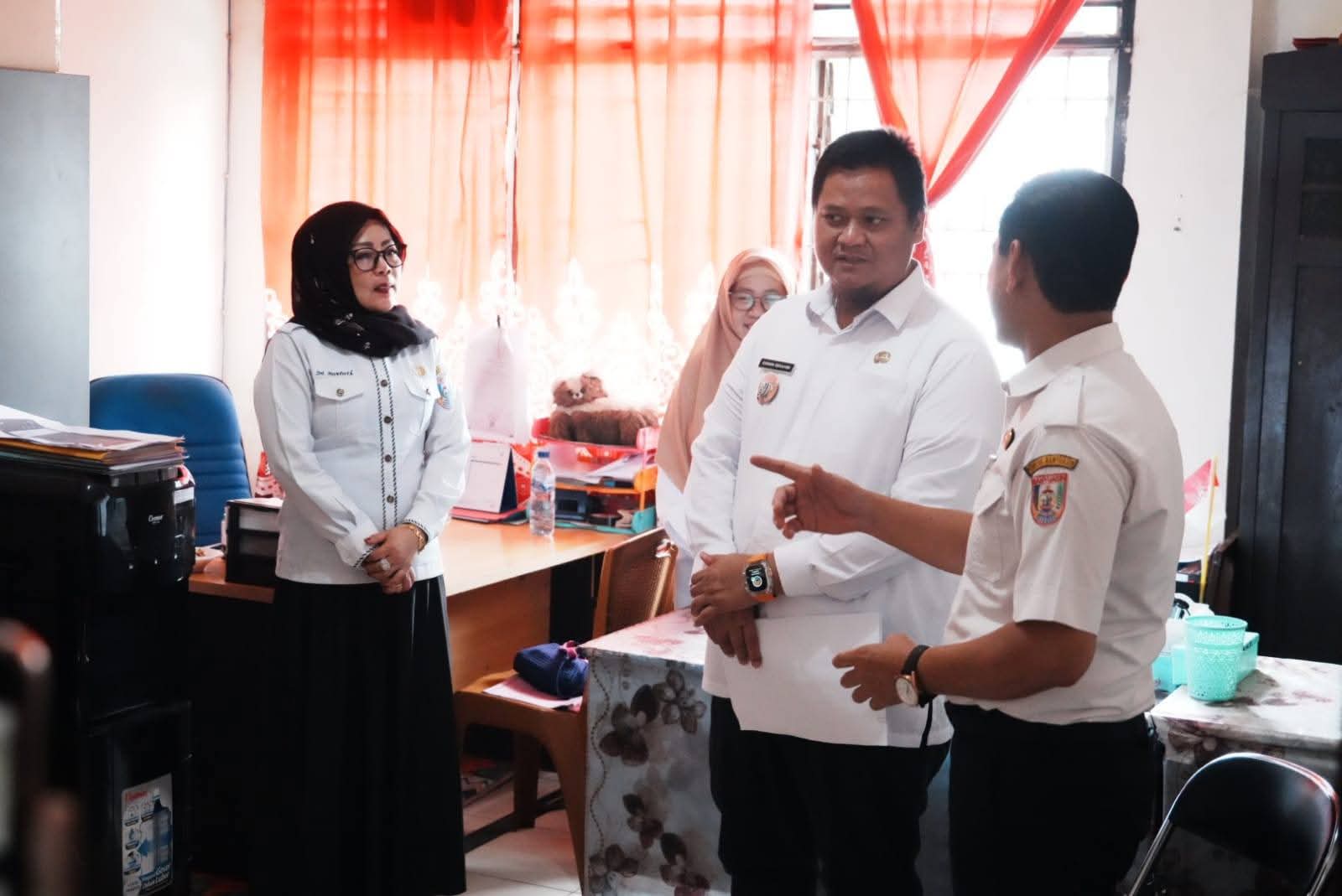 Erwin Ibrahim didampingi oleh Staf Khusus Bupati Banyuasin, Dr. H. Salni Pajar, S.Ag., M.Hi, Kepala BPBD Reza Agust Perdana, SE., M.Si dan Plt. Kepala Dinas Kominfo-SP Banyuasin, Hj. Ida Bahagia., SH., MM mengecek langsung pelayanan yang diberikan.