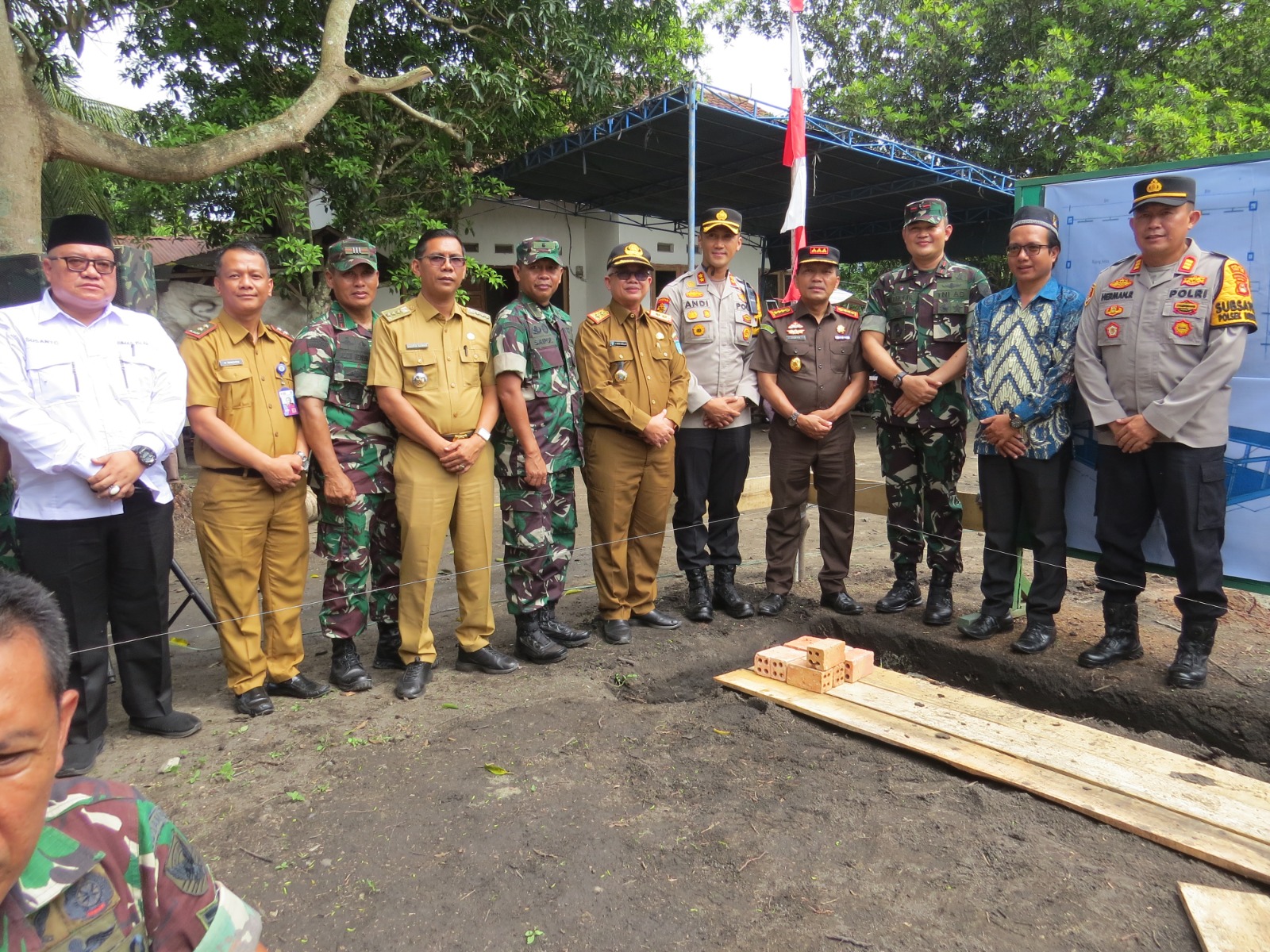 Pukanews.com, OKI – Dandim 0402/OKI-OI yang Diwakili oleh Kasdim 0402/OKI-OI Mayor Czi Saipul Anwar mendampingi Komandan Korem 044/Gapo Brigjen TNI Muhammad Thohir, S.Sos.,M.M bersama Forkopimda Kabupaten Ogan Ilir melaksanakan peletakan batu pertama pembangunan TPA Madrasah Al-Mutawaliyah Di Desa Bakung kecamatan Indralaya Utara kabupaten Ogan Ilir. Senin(11/12/23).