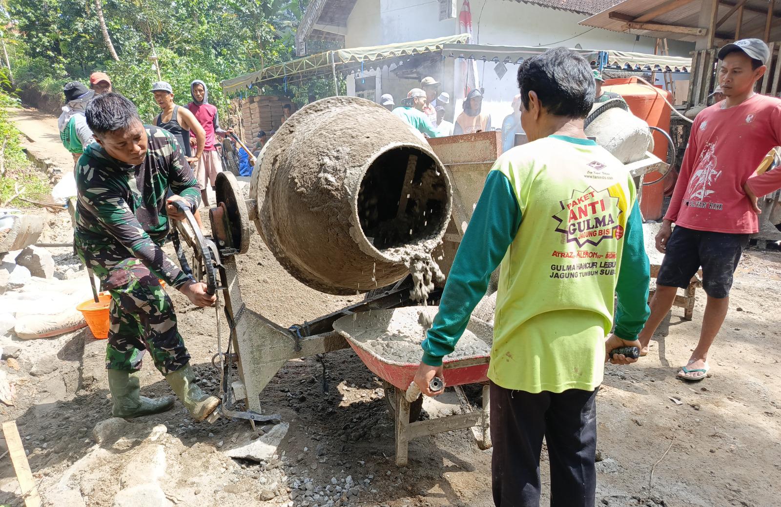 Proses pengecoran jalan jembatan dilakukan secara gotong royong antara anggota TNI dan warga setempat. Dengan semangat kebersamaan, seluruh pihak bahu-membahu menyelesaikan pekerjaan agar dapat selesai tepat waktu sesuai dengan target yang telah ditentukan.