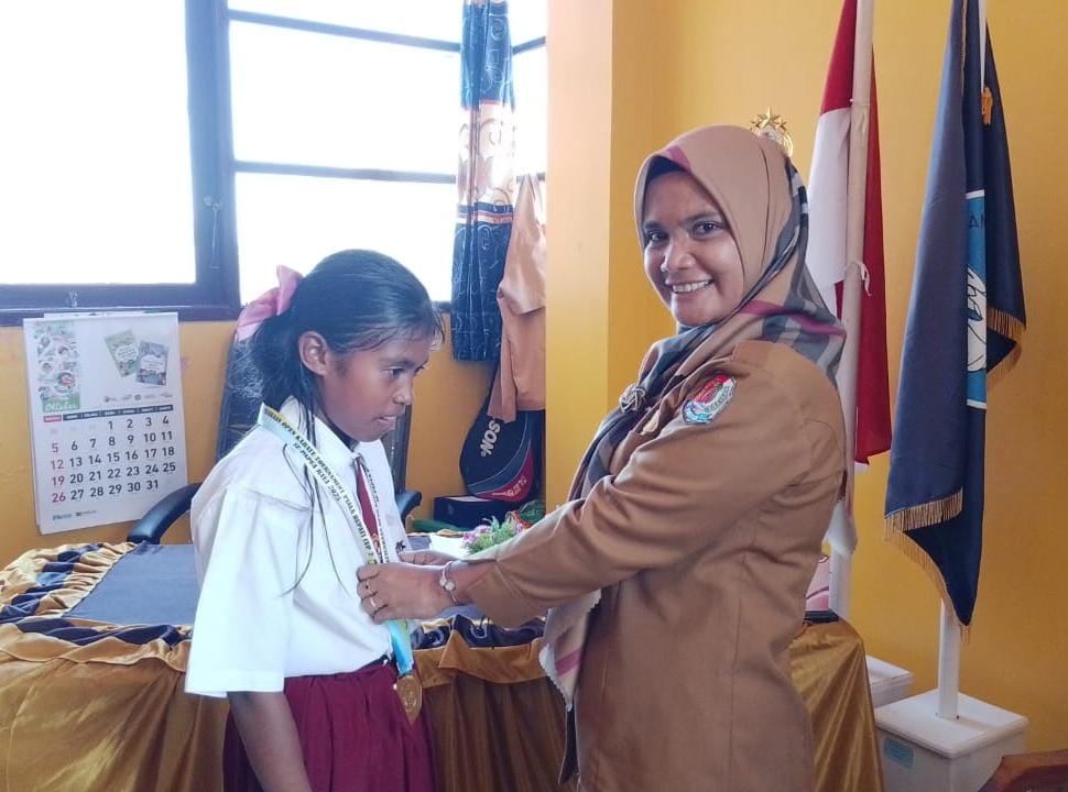 FAKFAK, PAPUA BARAT, PUKANEWS — Pelaksana tugas (Plt) Kepala Sekolah SD Negeri 1 Fakfak, Muhani, S.Pd, memberikan apresiasi dan motivasi kepada siswanya yang telah mewakili sekolah dalam ajang Open Tournament Karate Piala Bupati Cup II Se-Tanah Papua yang digelar di Timika, Papua Tengah, beberapa waktu lalu.