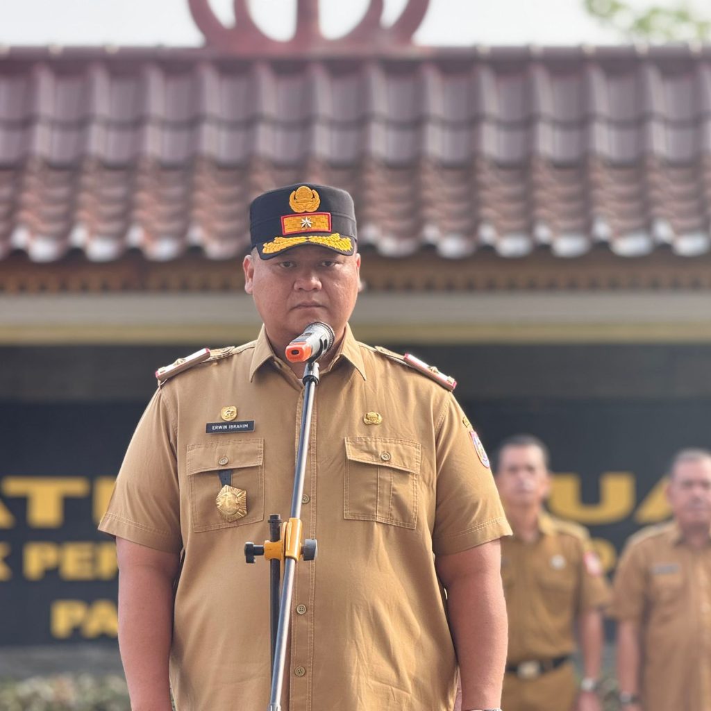 Banyuasin, PukaNews.com — Sekda Banyuasin Ir Erwin Ibrahim,ST,MM,MBA,IPU, Asean Eng memimpin apel pagi di Lingkungan Setda Banyuasin sampaikan tiga poin.